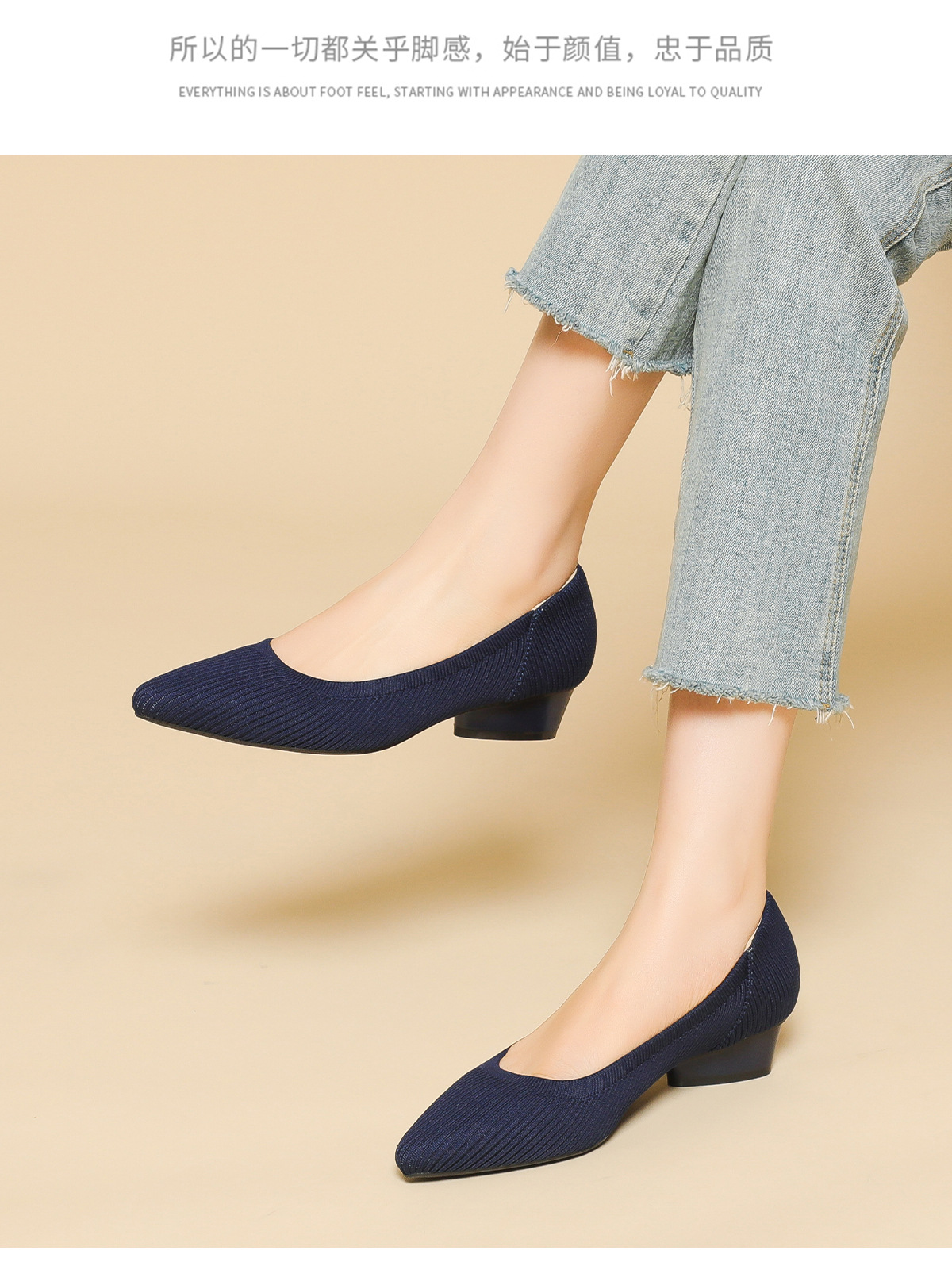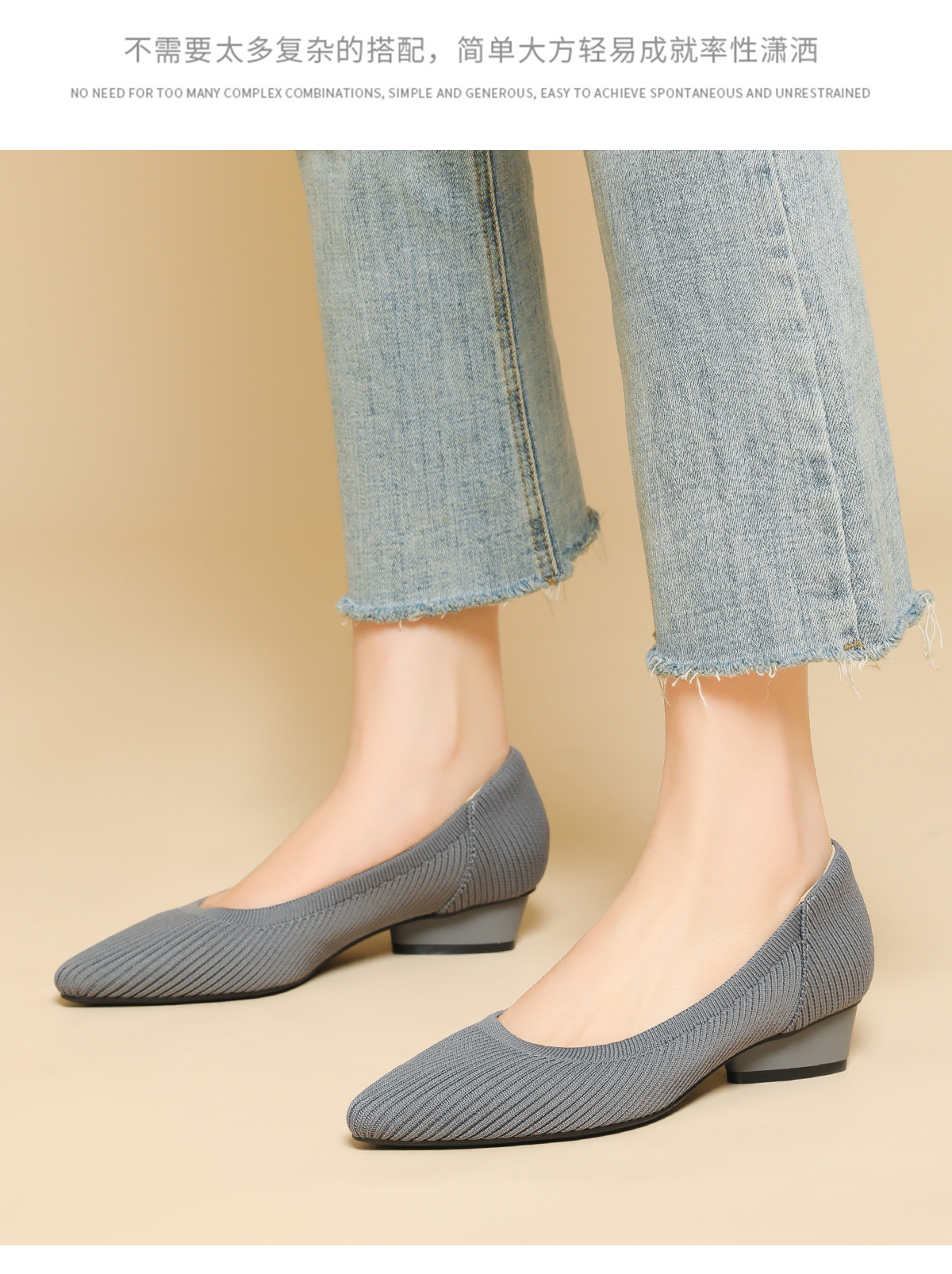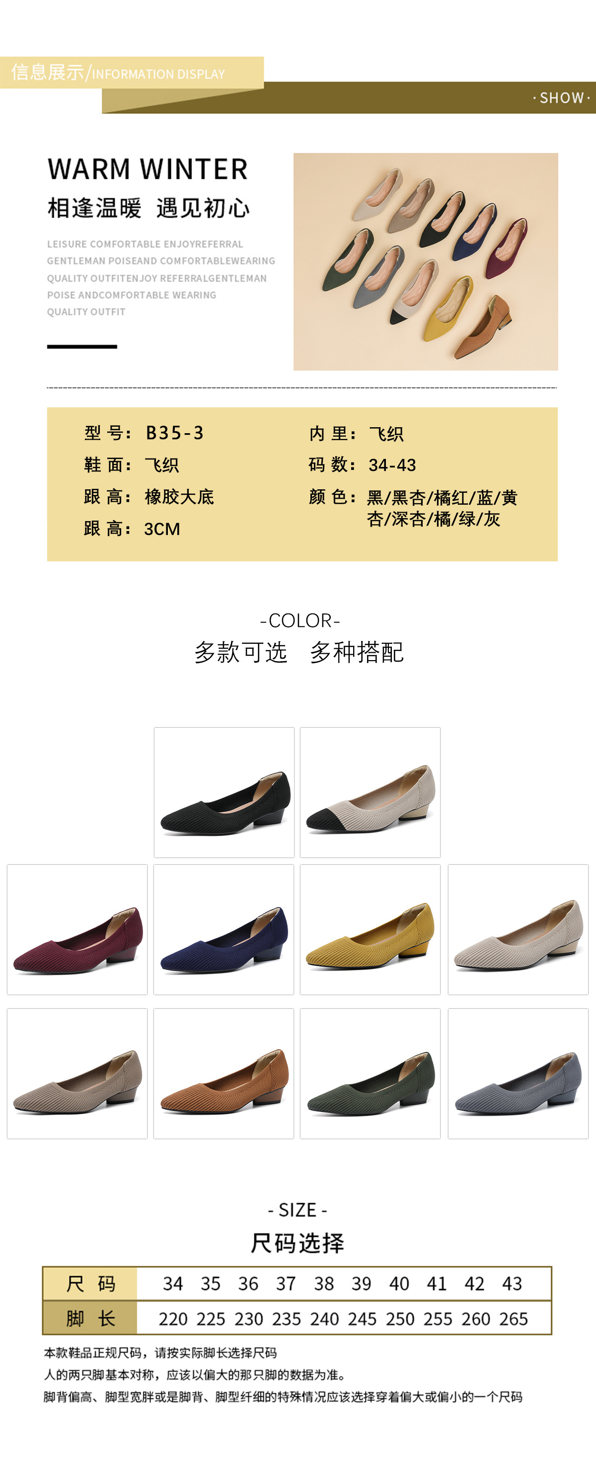 B35-3 뾰족한 발가락 얕은 입 직물 사랑 두꺼운 뒤꿈치 캐주얼 플러스 사이즈 줄무늬 단색 니트 통기성 로우 힐 미드 힐 신발스토어 가기