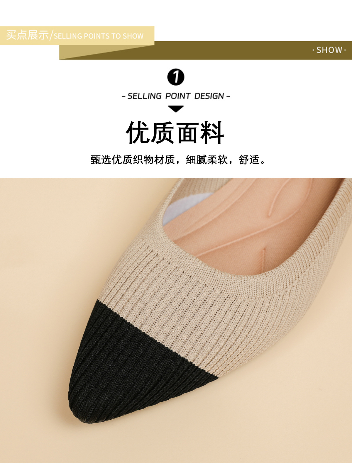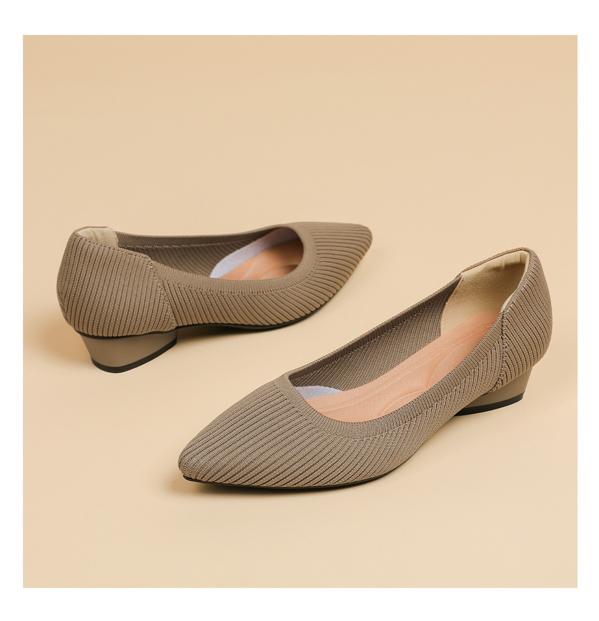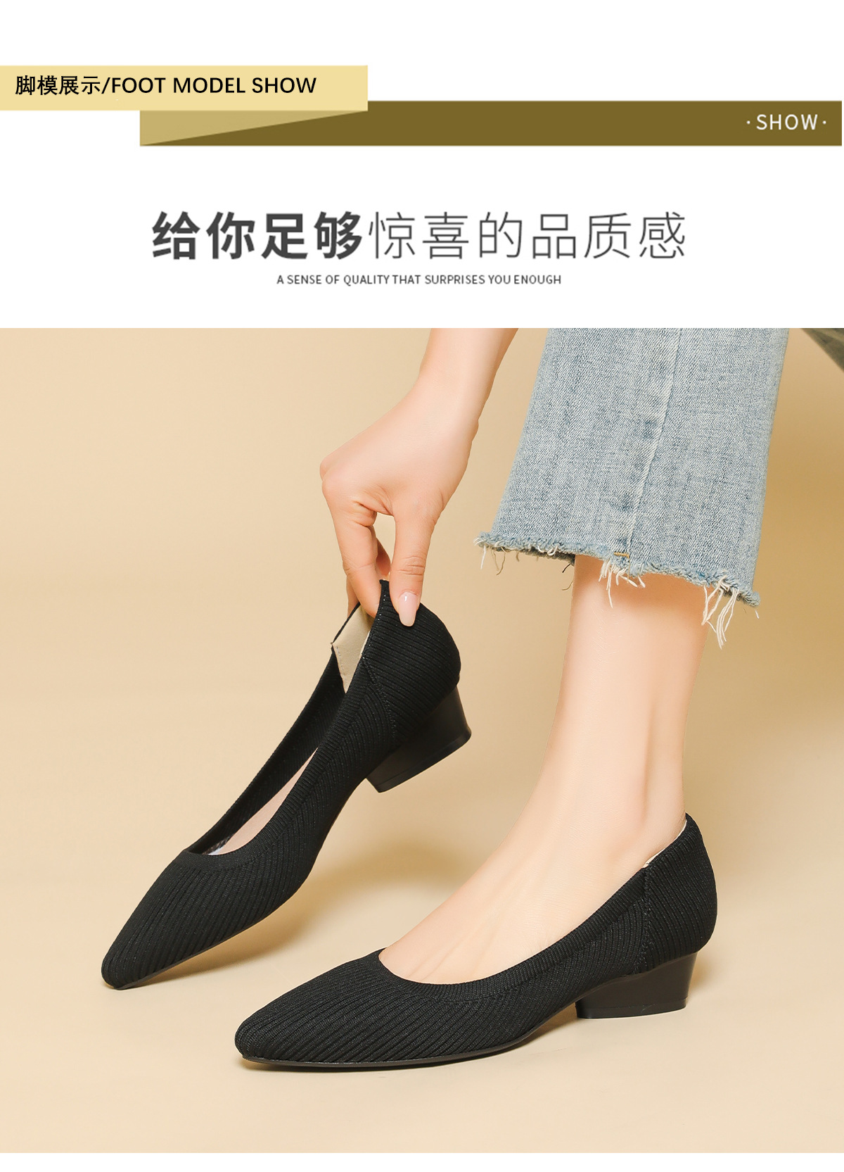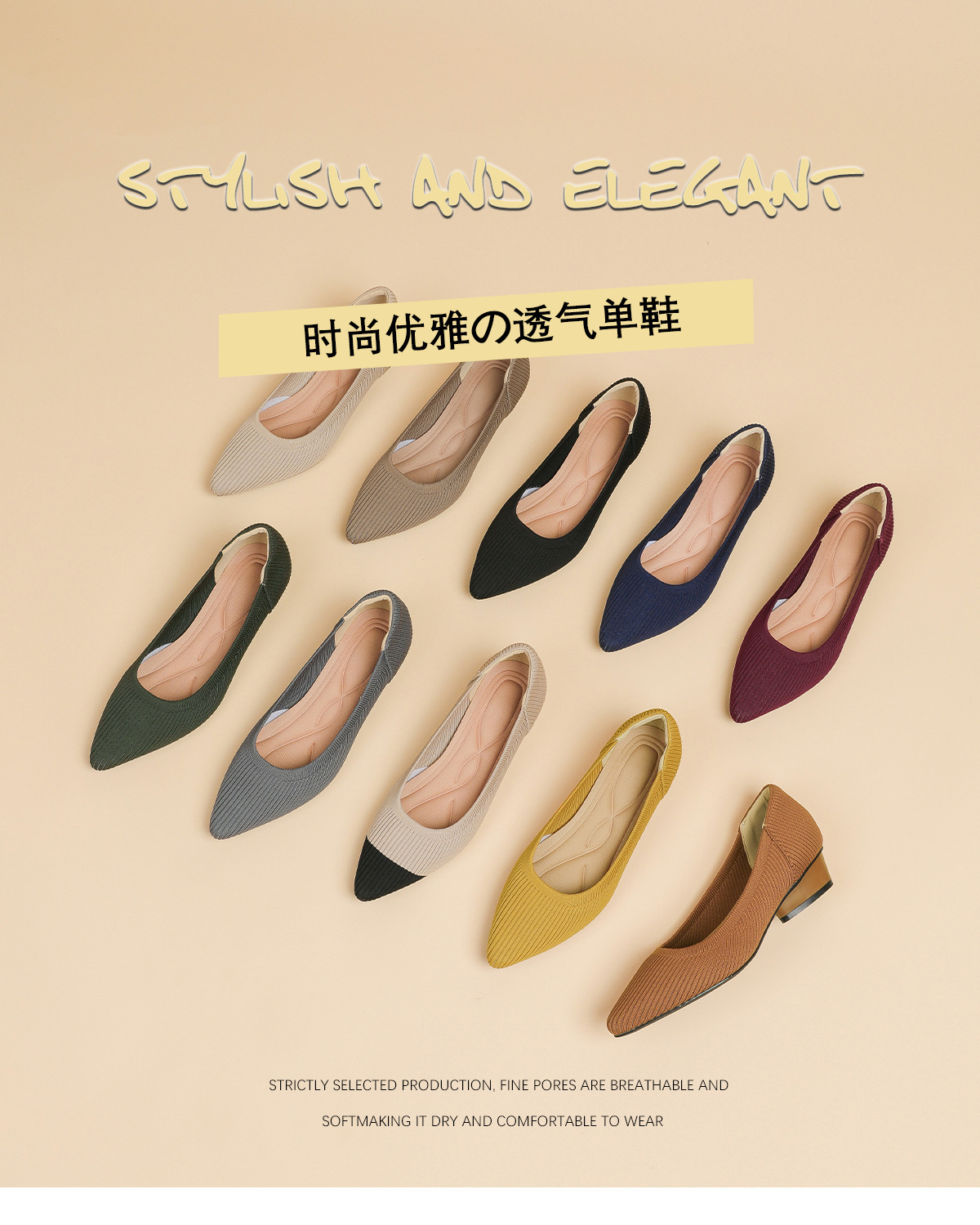 B35-3 뾰족한 발가락 얕은 입 직물 사랑 두꺼운 뒤꿈치 캐주얼 플러스 사이즈 줄무늬 단색 니트 통기성 로우 힐 미드 힐 신발스토어 가기