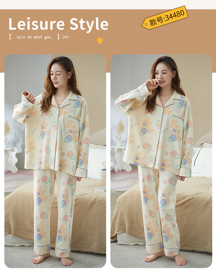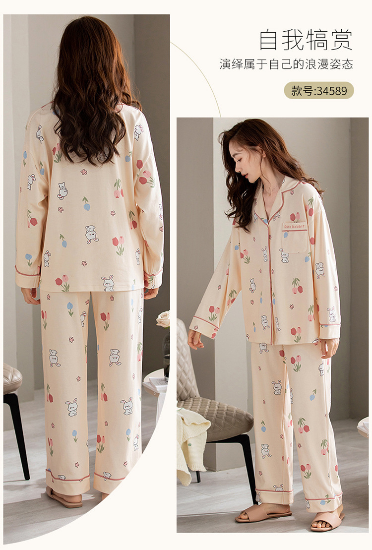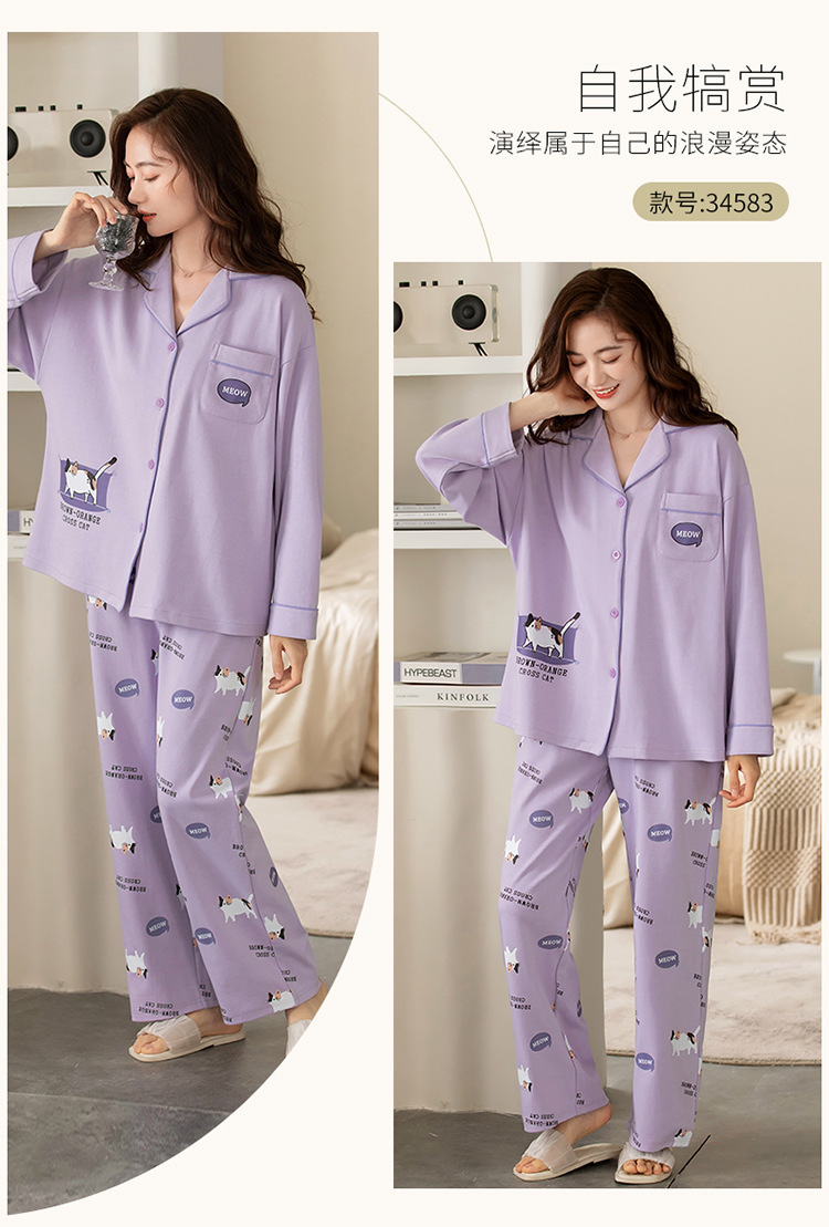 잠옷 여성의 봄과 가을 100 면 긴 소매 얇은 2023 새로운 봄과 여름 하이 엔드 센스 홈 세트스토어 가기