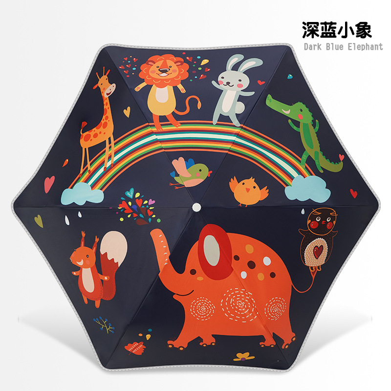 새로운 3 배 우산 컬러 접착제 자외선 차단제 반올림 어린이 우산 안티 찌르기 비 이중 목적 어린이 우산