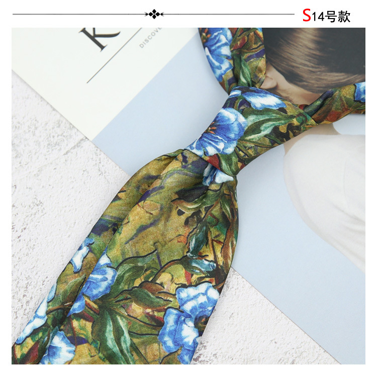남성과 여성의 홍콩 스타일 복고풍 캐주얼 세트 액세서리 유화 미국 스타일 넥타이 영국 인쇄 9cm 와이드 타이스토어 가기