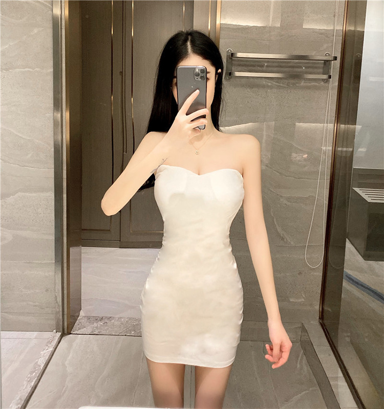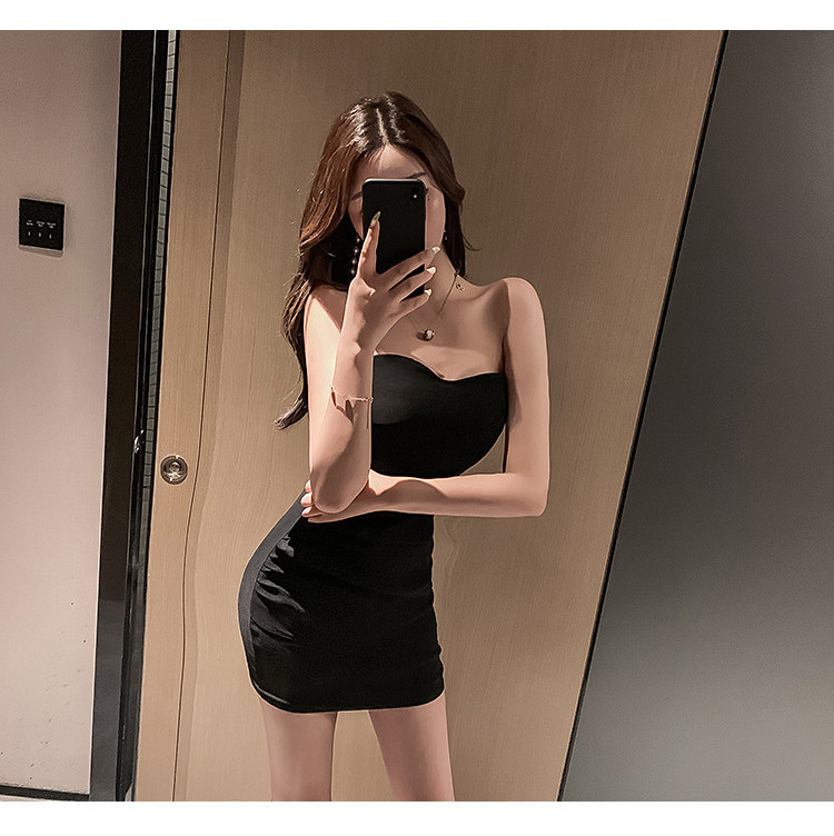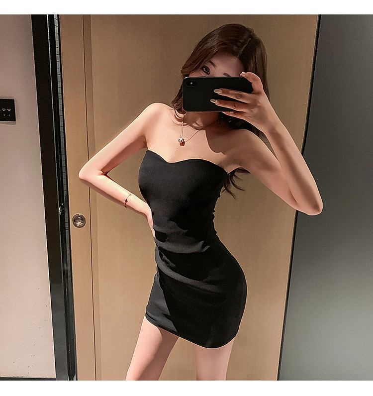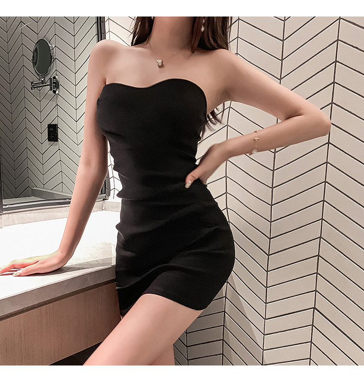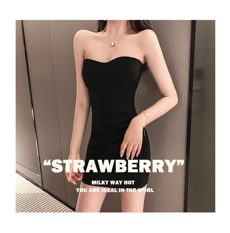 독립 스테이션 아마존 크로스 보더 내장 가슴 패드 튜브 탑 드레스 오프 숄더 여름 신작 나이트 클럽 섹시한 리틀 블랙 드레스