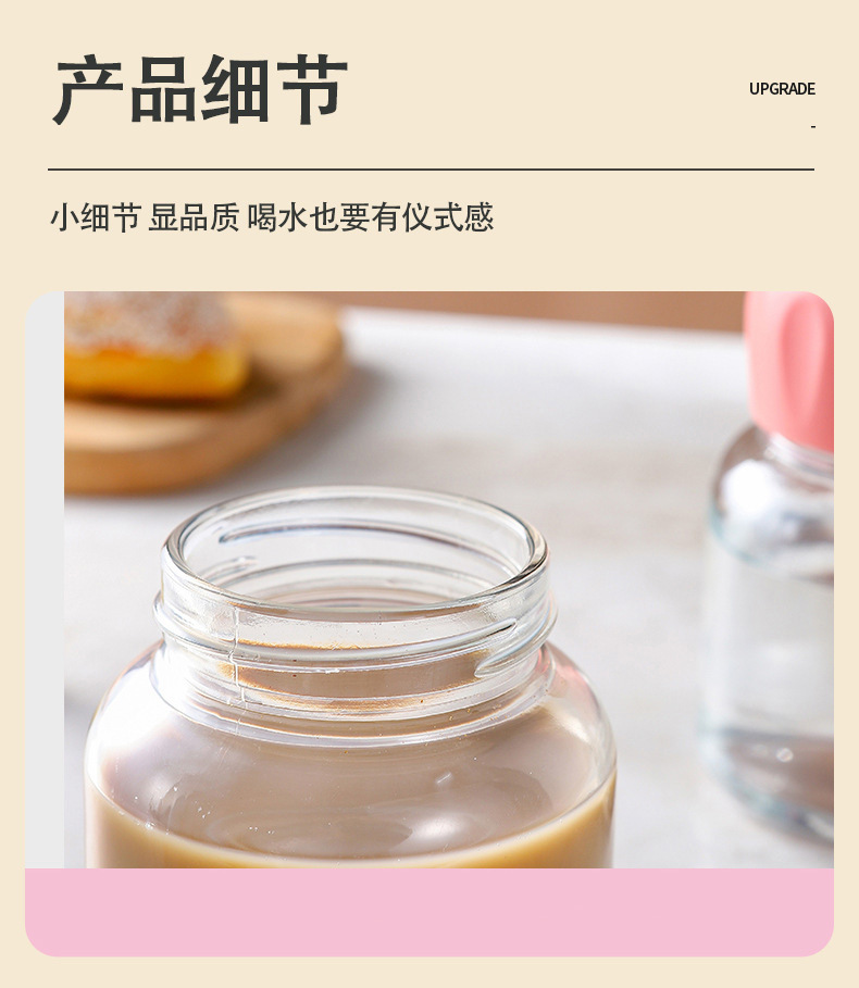 材质说明:杯身钠钙玻璃,盖子pp塑料
