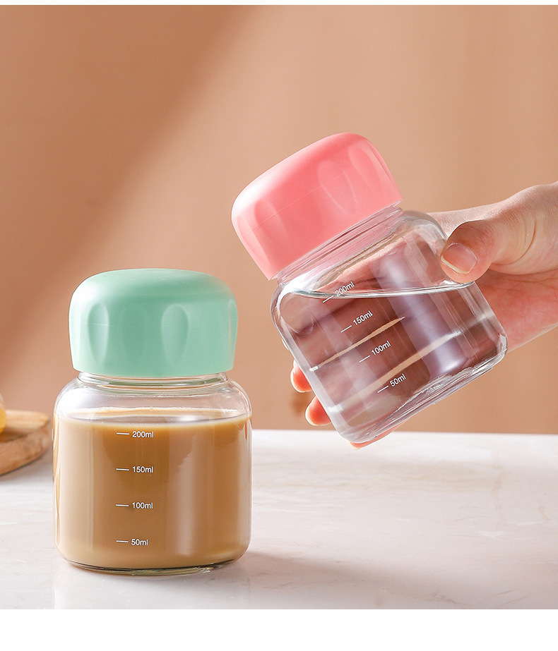 가늠자 유리 물 컵 커피 컵 가정용 휴대용 콩 우유 유리 컵과 높은 찾고 귀여운 지방 우유 컵