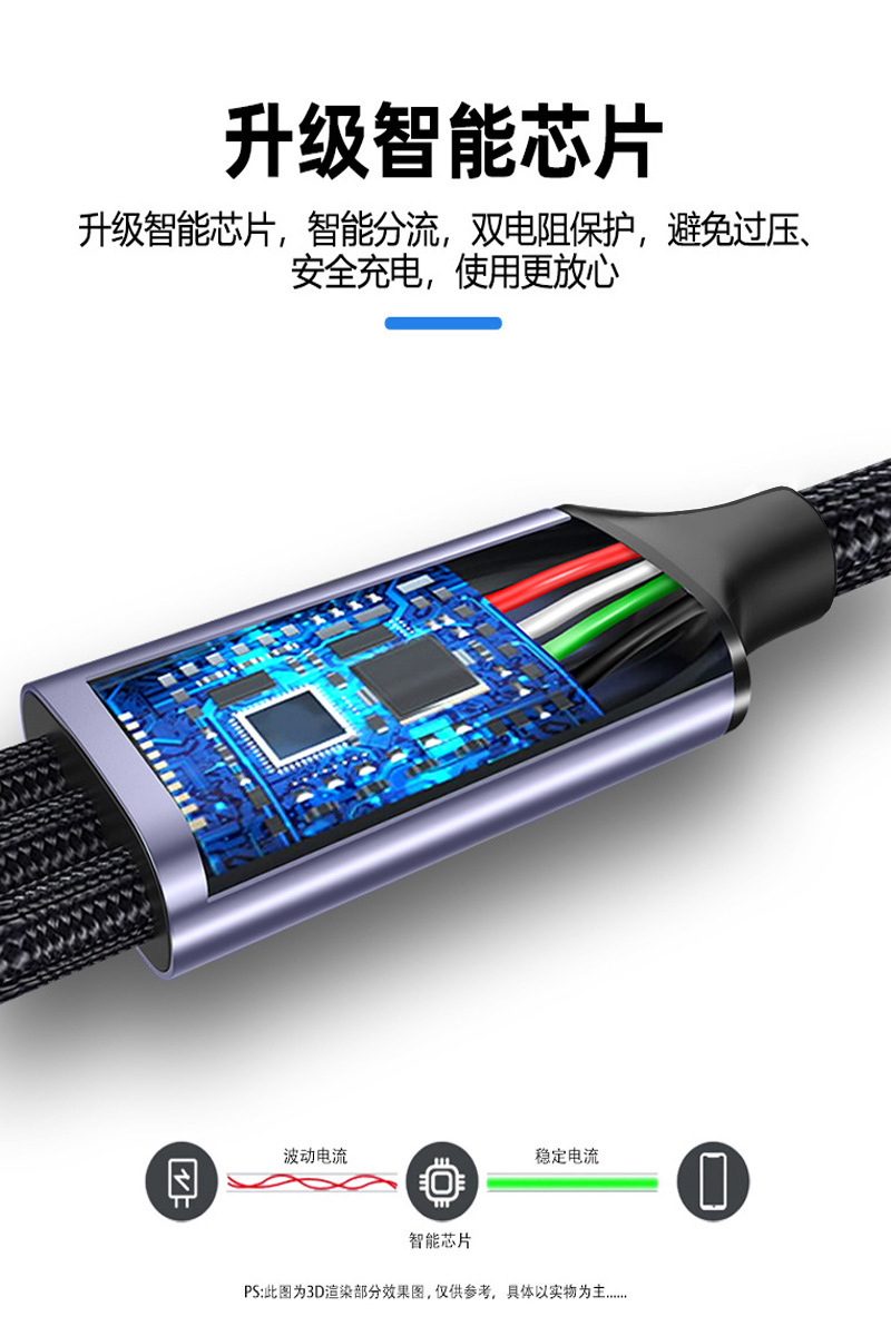 1、采用环保尼龙编织外被,手感极佳,国标铜线,电流可达到2.1A,极速充电,每条出厂前我们均半成品测试一次成品测试一次,保证将不良率降至微零,外观新颖,线材柔软、耐用、不易打结,手感细腻、有质感,铜线芯高速传输,充电传输稳定不间断。