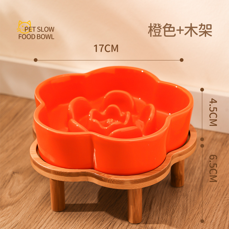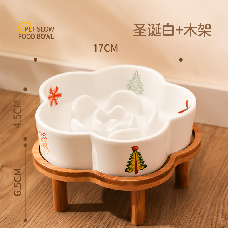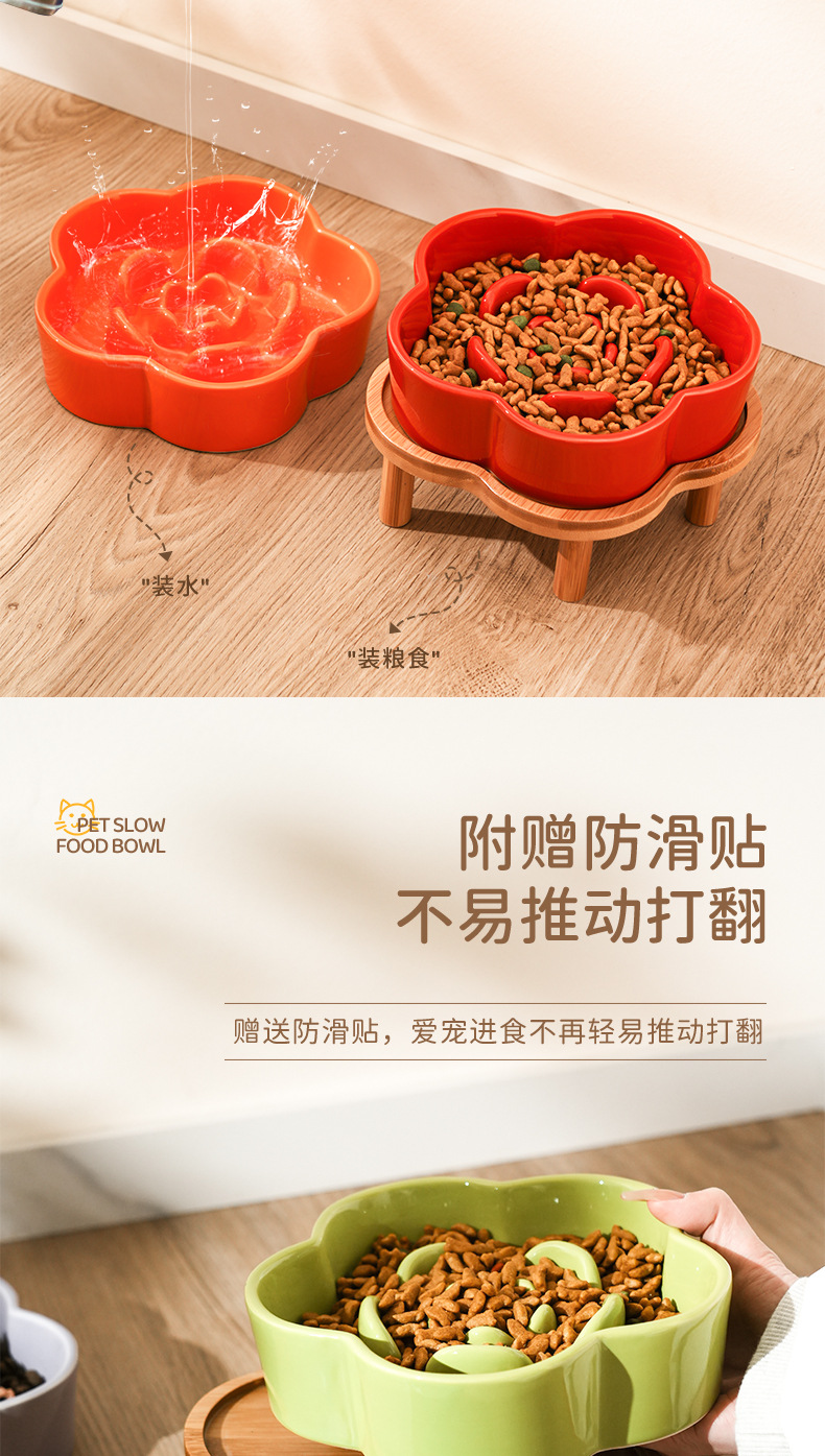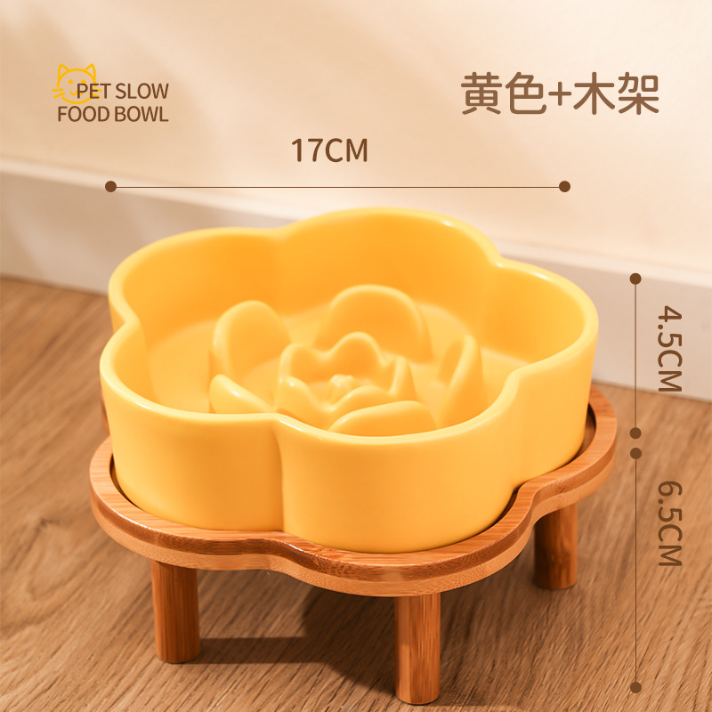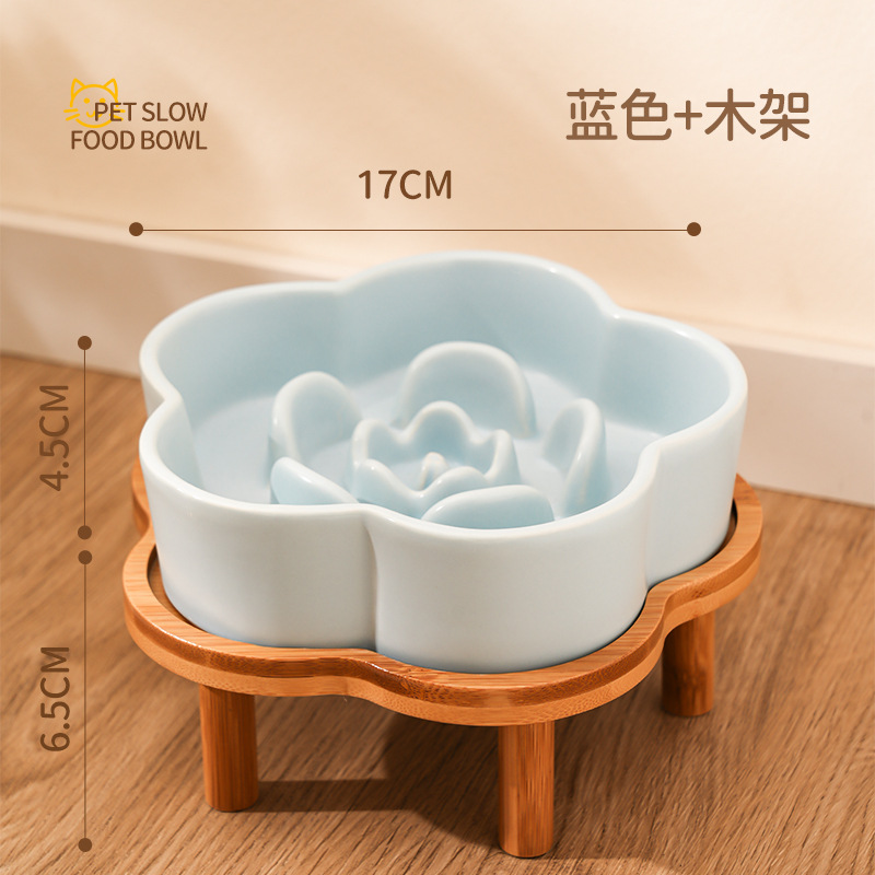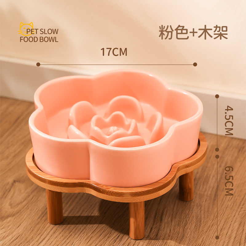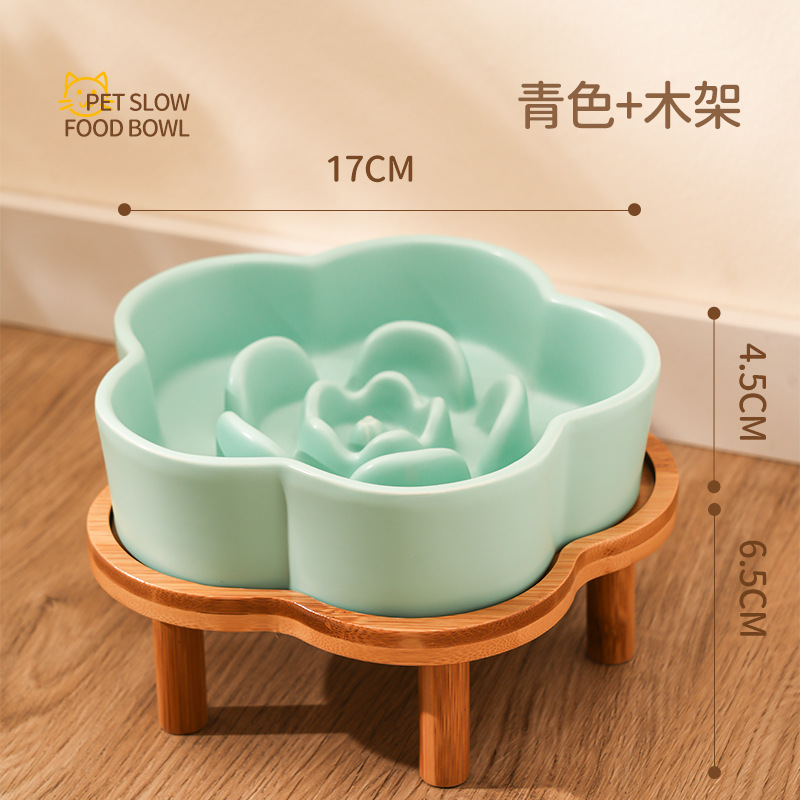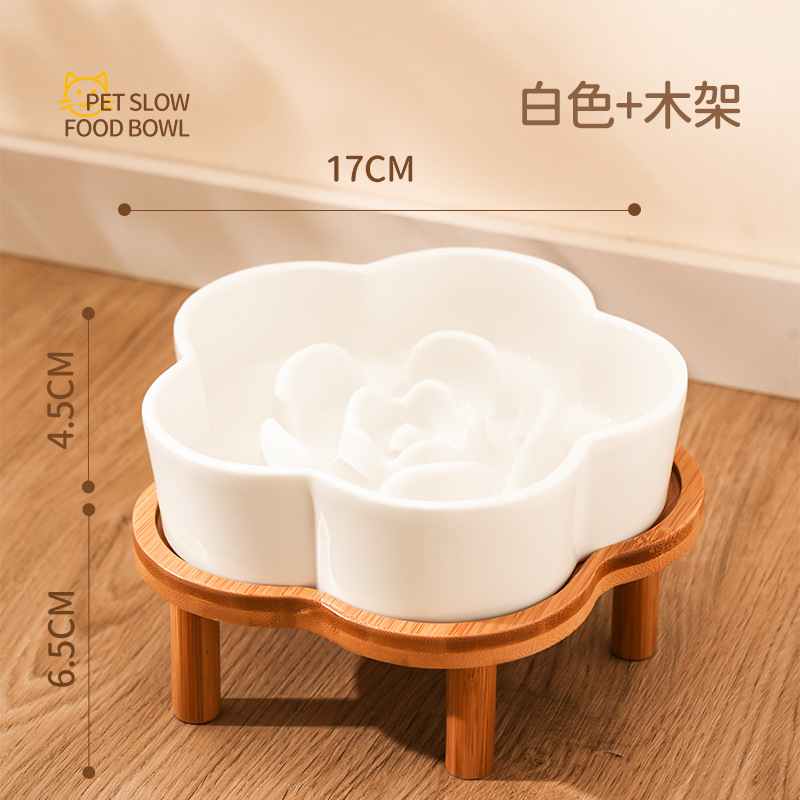 세라믹 슬로우 푸드 보울 안티 초크 고양이 먹이 그릇 방지 검은 턱 작은 개 고양이 목 보호 나무 프레임 느린 음식 그릇스토어 가기