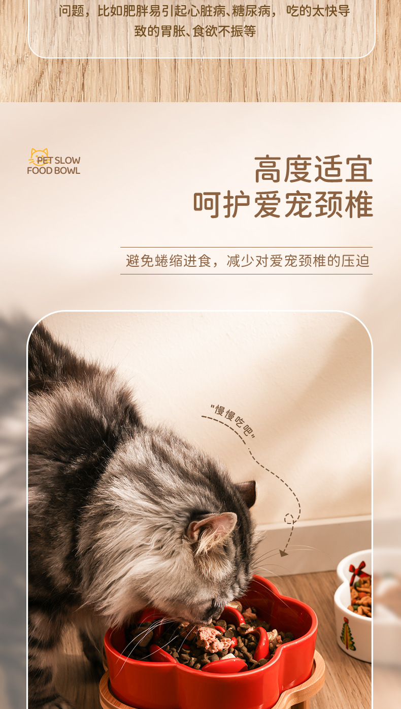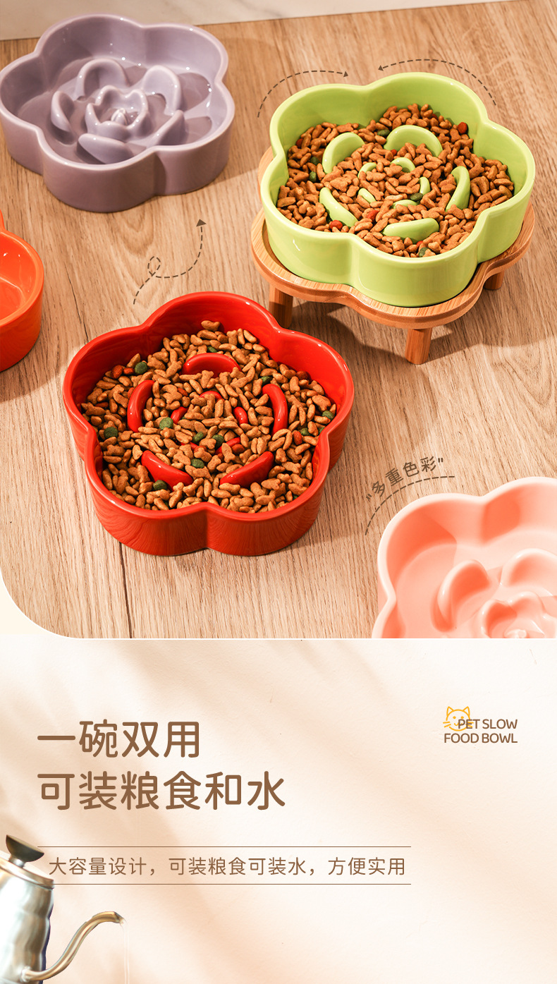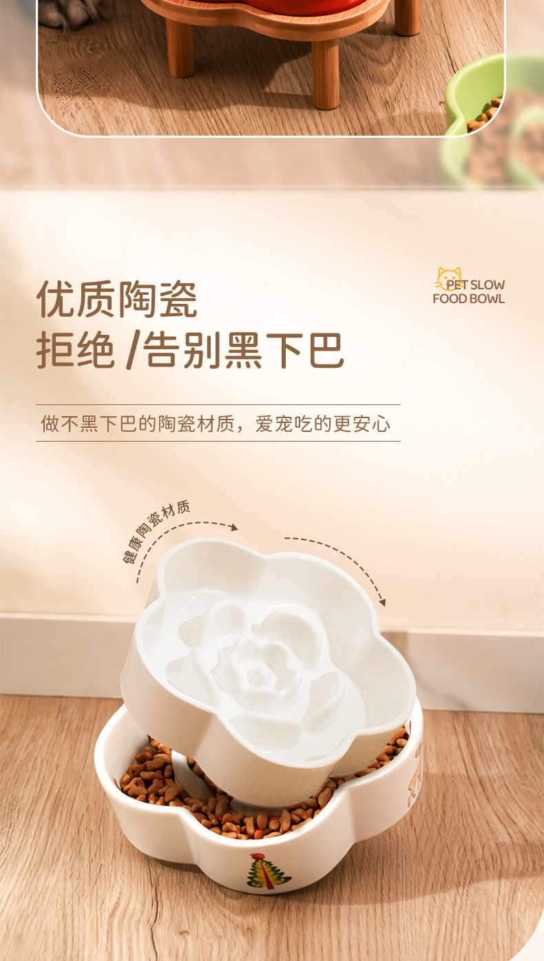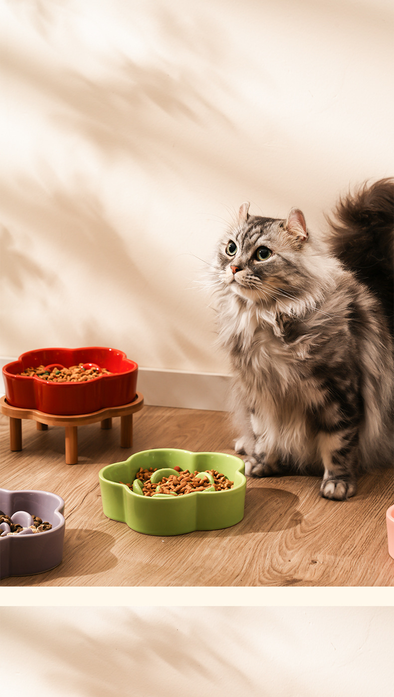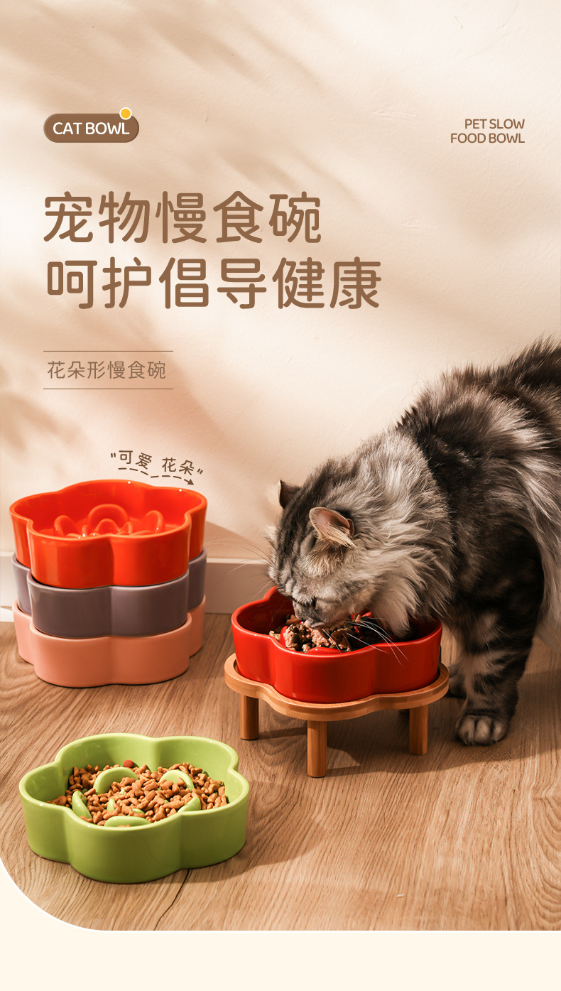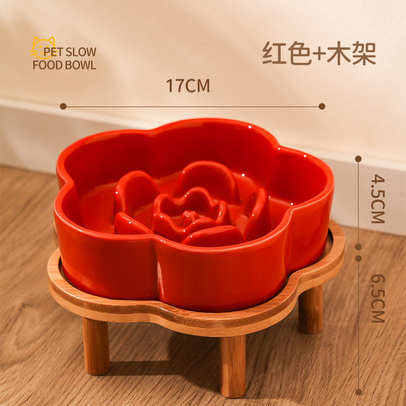 세라믹 슬로우 푸드 보울 안티 초크 고양이 먹이 그릇 방지 검은 턱 작은 개 고양이 목 보호 나무 프레임 느린 음식 그릇스토어 가기