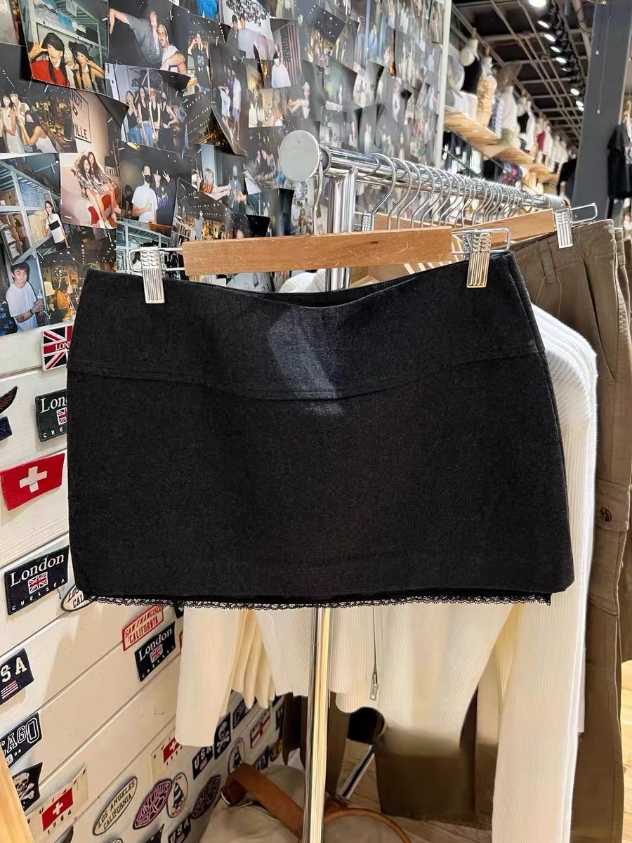 BM 스타일 블랙 슬림 낮은 허리 레이스 미니 스커트 원스텝 스커트 여성 bm 핫 소녀 순수 엉덩이 치마 조수
