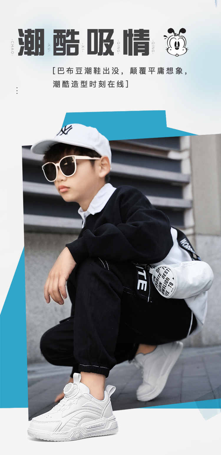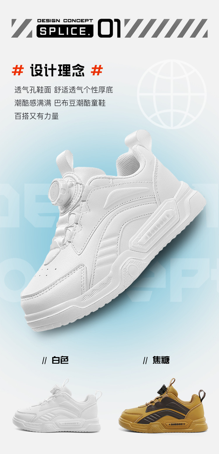 Babdou 소년 신발 보드 신발 2024 봄과 가을 새로운 중형 및 큰 어린이 흰색 신발 소년 신발 어린이 운동화