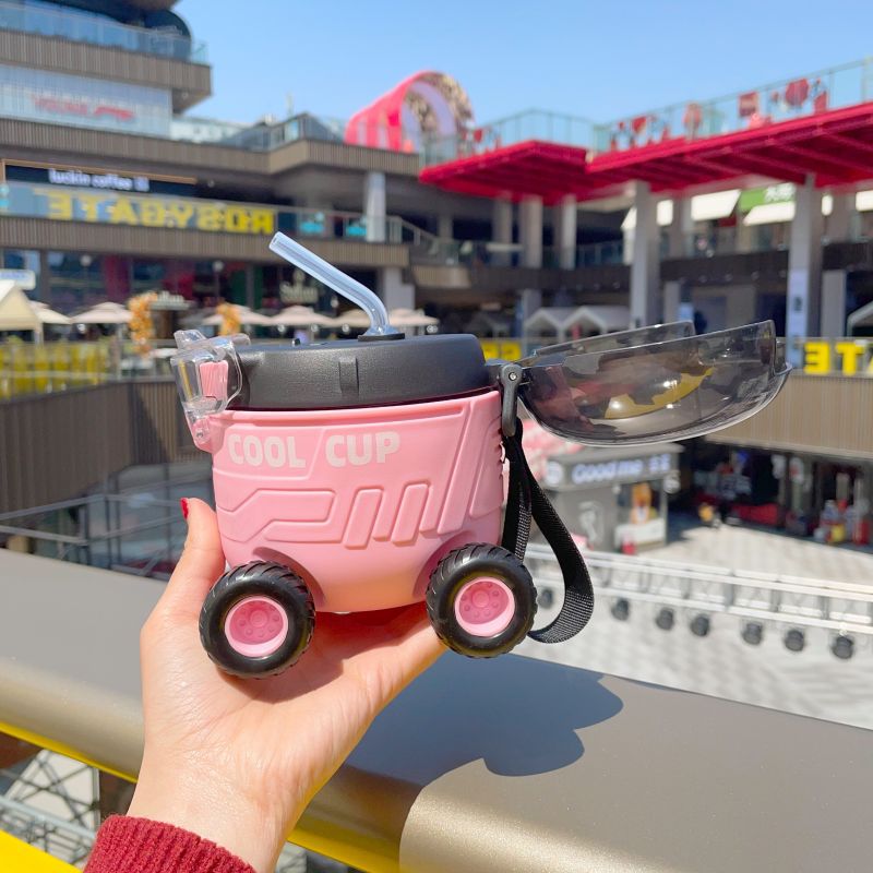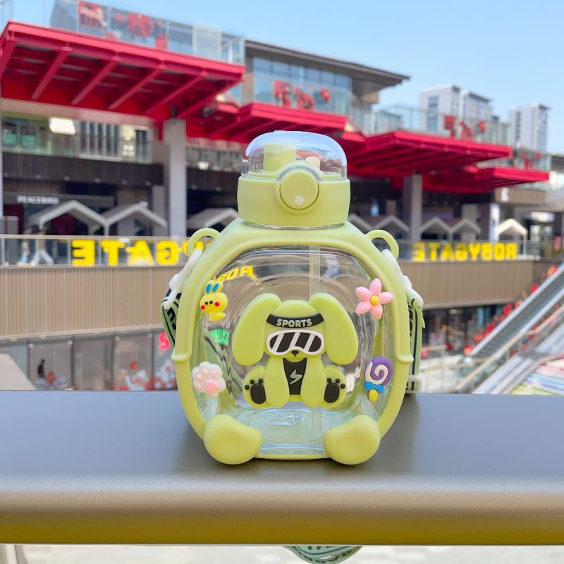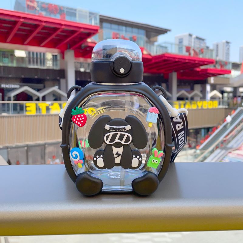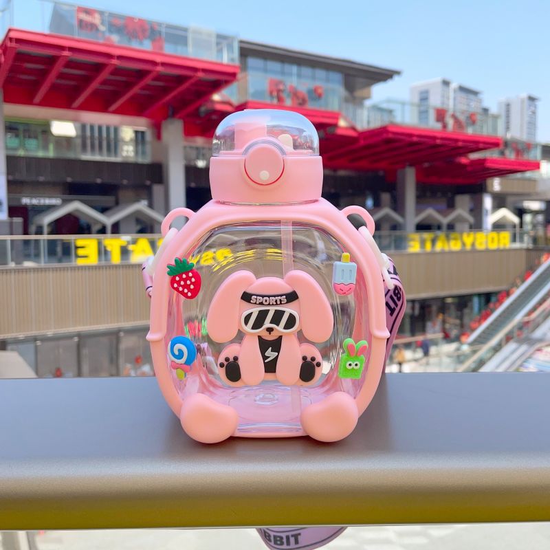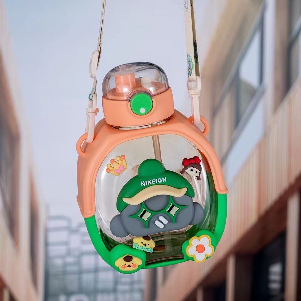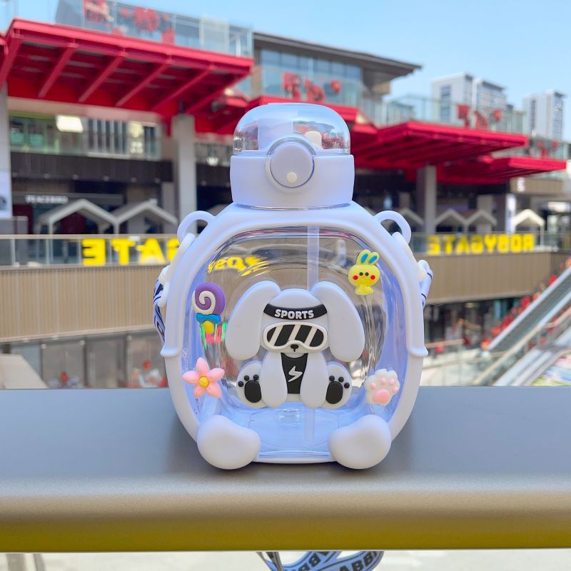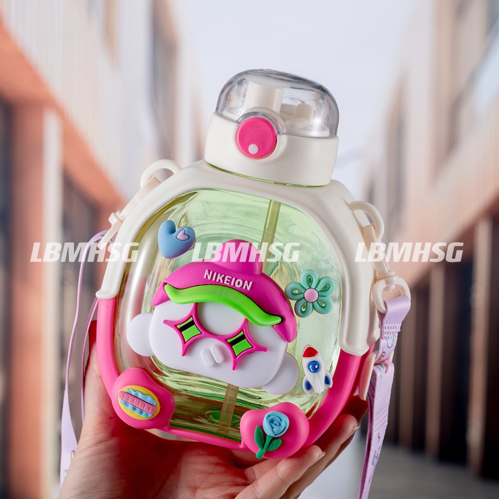 2025 새로운 더블 음료 플라스틱 워터 컵 어린이 밀짚 컵 만화 다채로운 활력 컵 대용량 휴대용 주전자