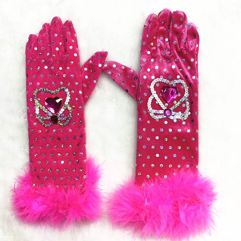 도매 크리스마스 어린이용 장갑, 머리띠, 마스크 3종 세트, 반짝이 하트 모양 플러시 장갑, 파티용품스토어 가기