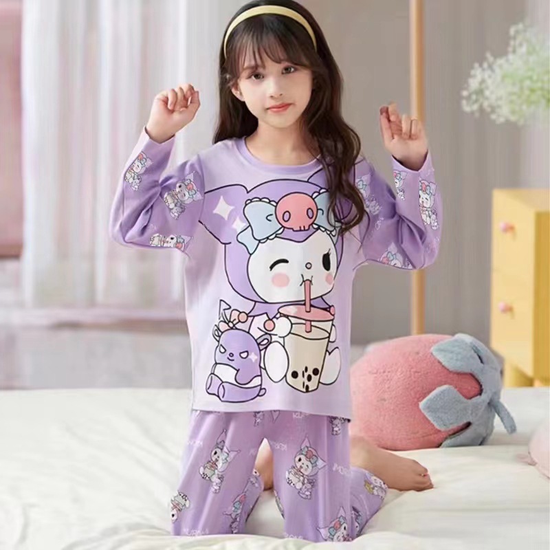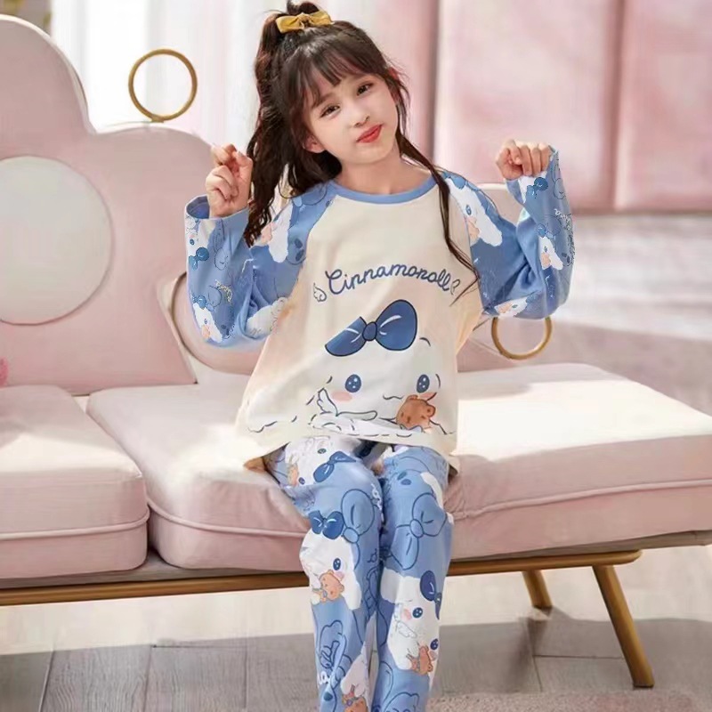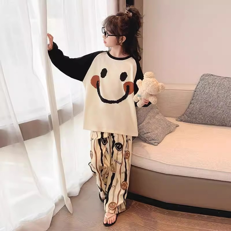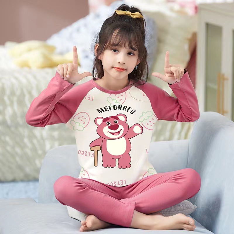 2025 새로운 스타일 어린이 잠옷 여아 봄 가을 얇은 긴팔 세트 소녀 만화 귀여운 공주 홈웨어스토어 가기