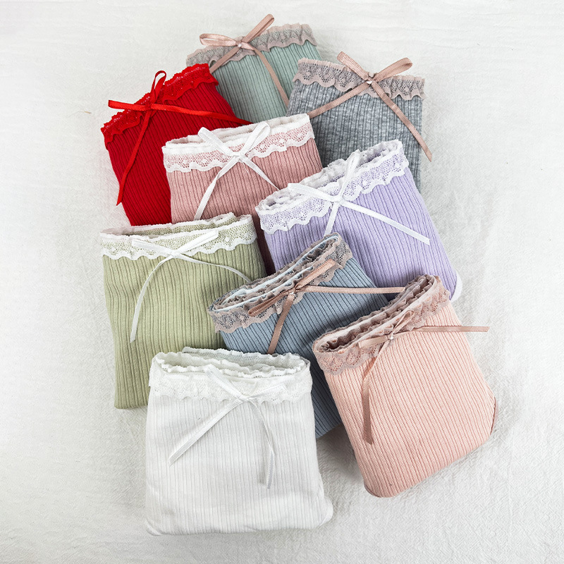 일본풍 귀엽고 섹시한 순면 여성용 팬티 통기성 좋은 중간 허리 삼각팬티 도매스토어 가기