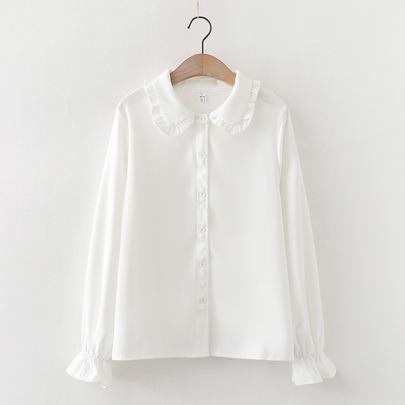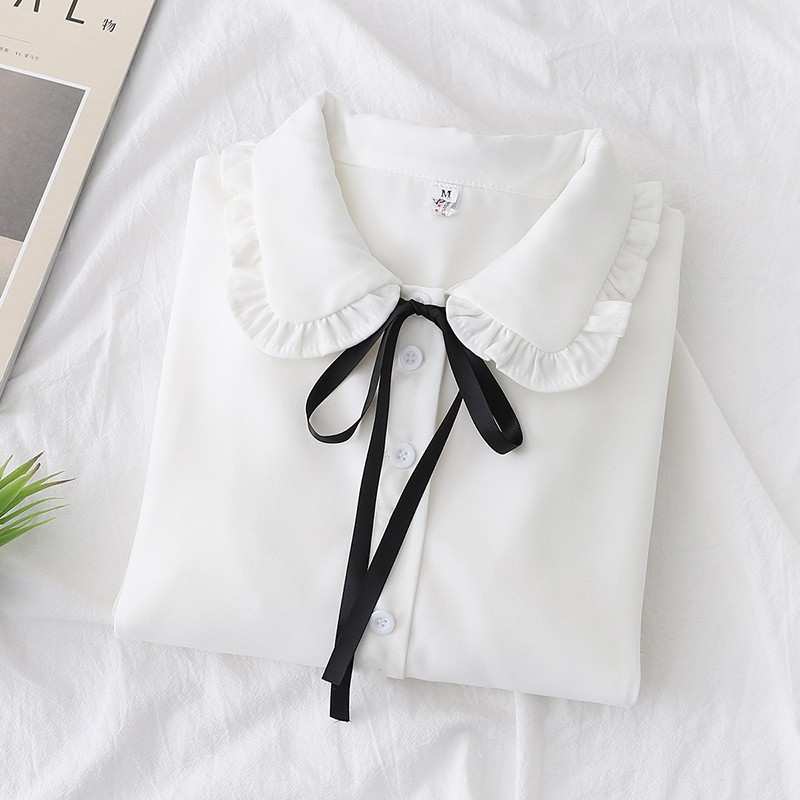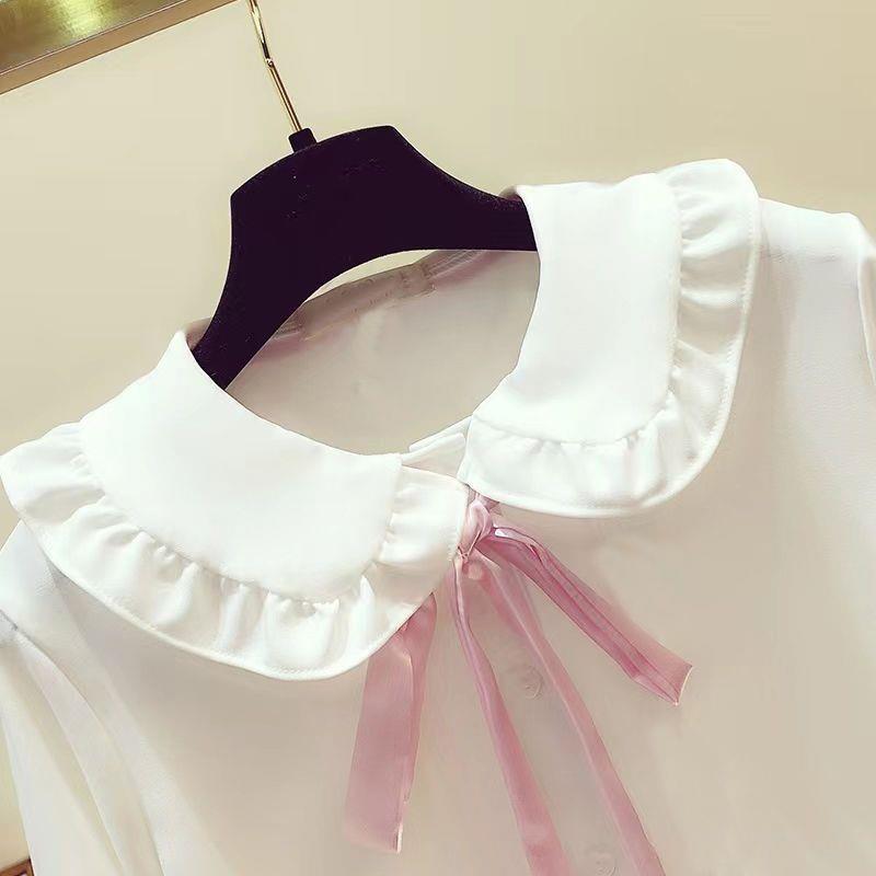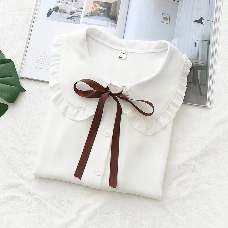 봄 2024 소녀들의 시폰 올 매치 긴팔 셔츠 중 · 큰 아이들 대외 무역 소녀들의 둥근 목 공주 귀여운 셔츠