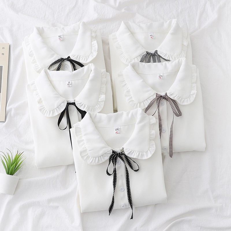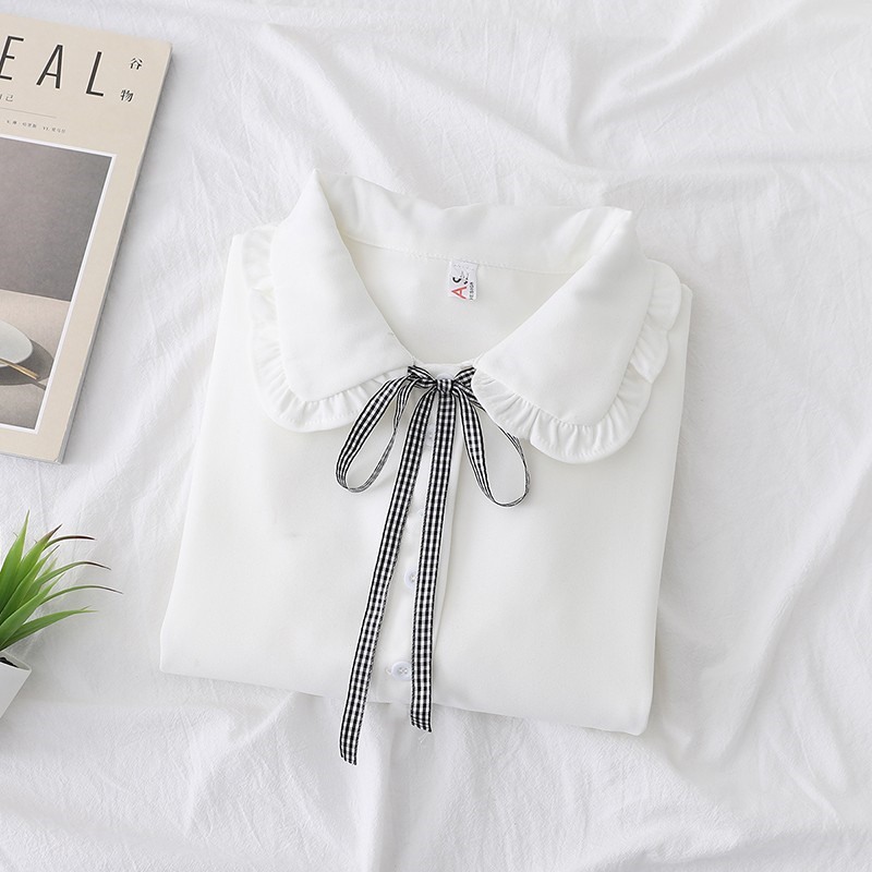 봄 2024 소녀들의 시폰 올 매치 긴팔 셔츠 중 · 큰 아이들 대외 무역 소녀들의 둥근 목 공주 귀여운 셔츠스토어 가기