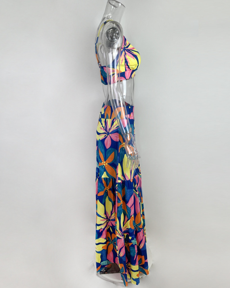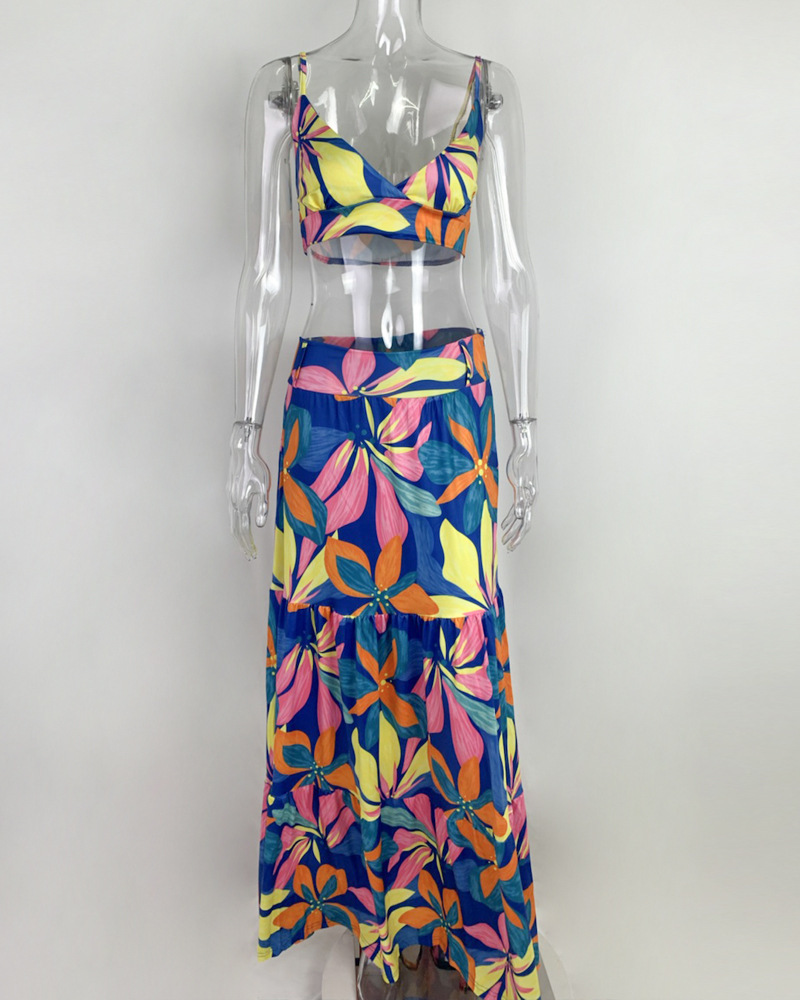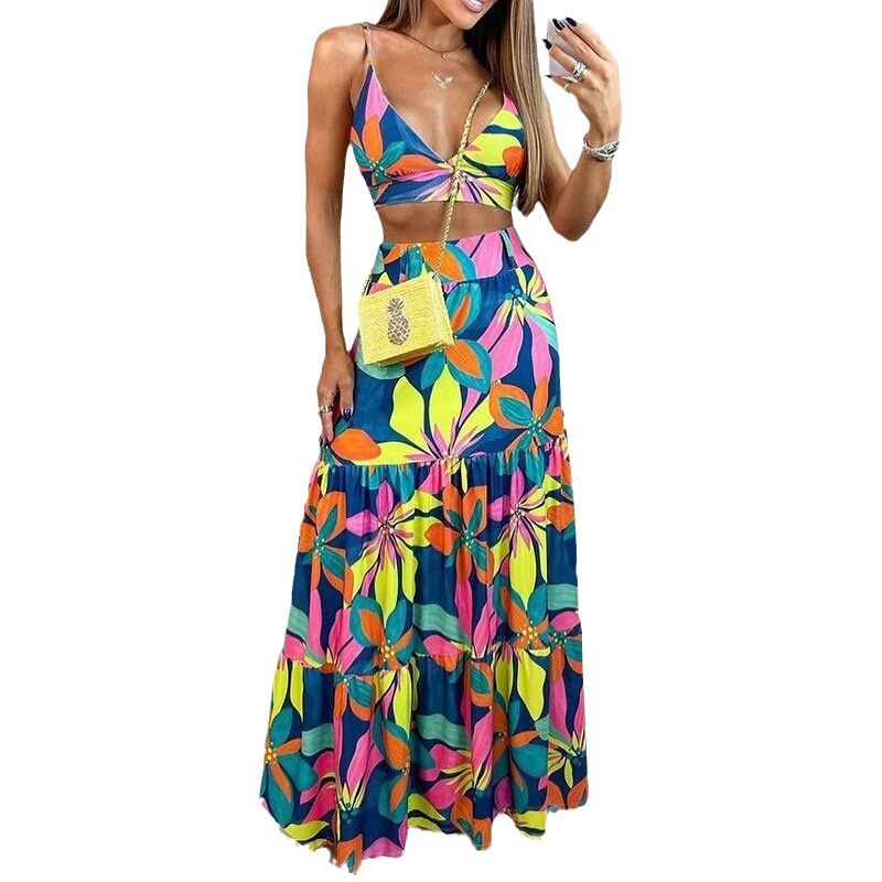 2024 유럽과 미국의 대외 무역 여성 의류 유행 우아한 기질 통근 프린트 V 넥 슬링 하프 길이 큰 스윙 원피스 세트