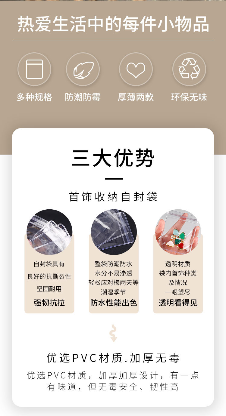Pvc 투명 보석 가방 귀걸이 저장 가방 보석 봉인 된 가방 산화 방지 ziplock 가방 작은 가방