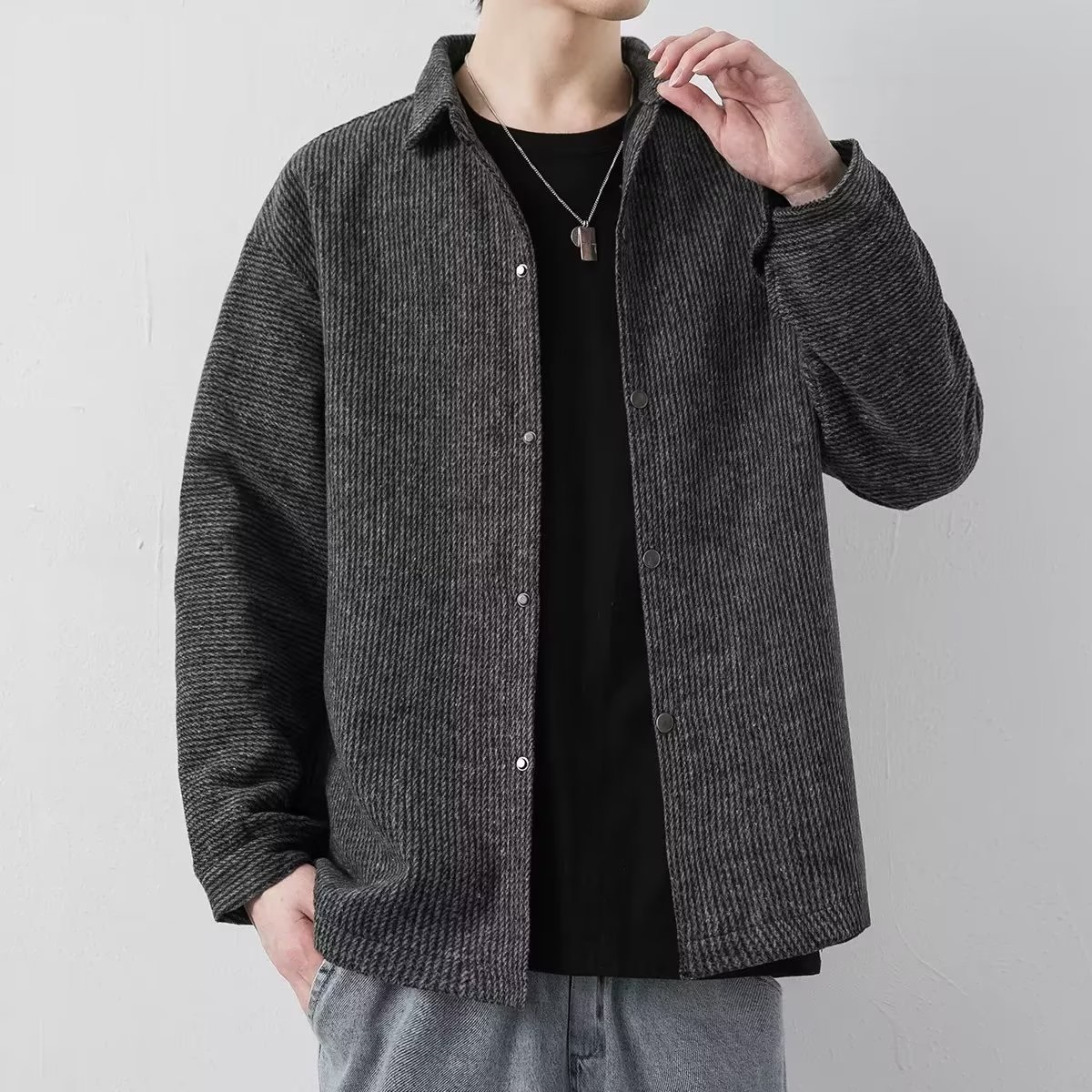 2023 봄, 가을 커플 긴팔 떨어지는 세로 줄무늬 루즈 셔츠 남성 트렌디 인 하이 스트리트 올 매치 셔츠스토어 가기