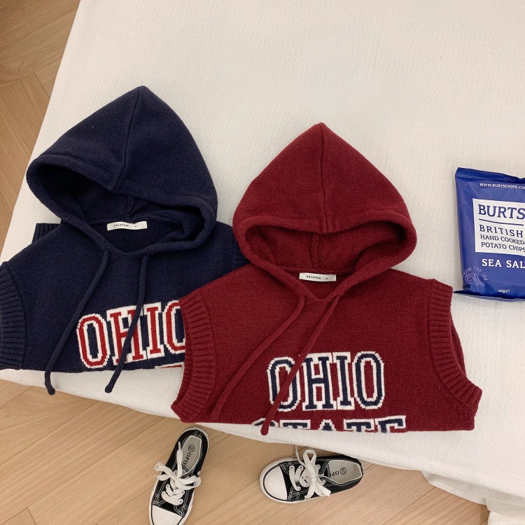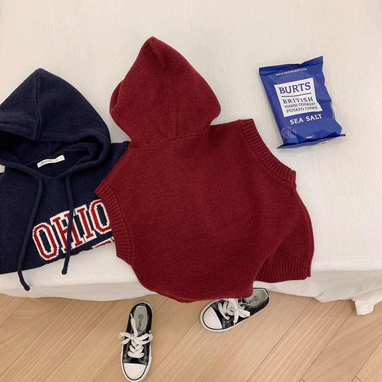 소년 소녀 니트 조끼 후드 티 봄, 가을, 겨울 어린이 풀오버 스웨터 조끼 겉옷 베이비 울 양복 조끼