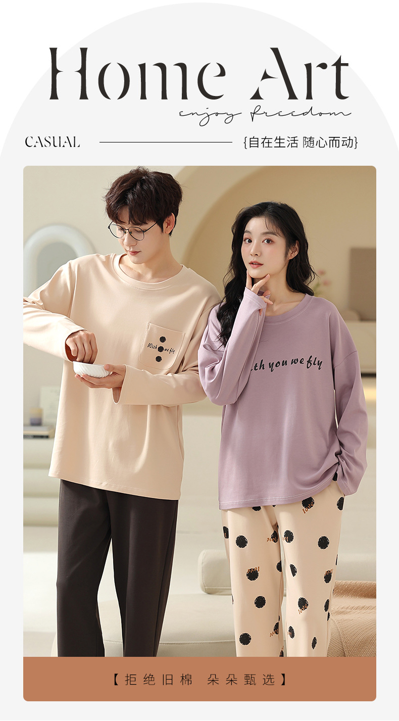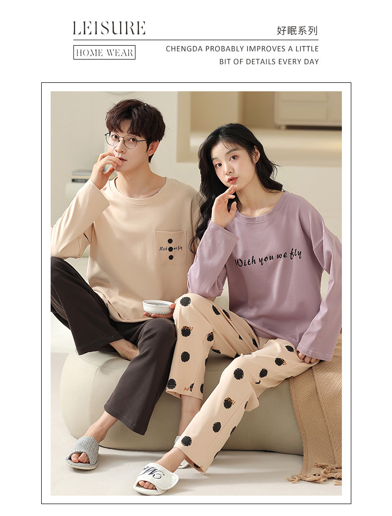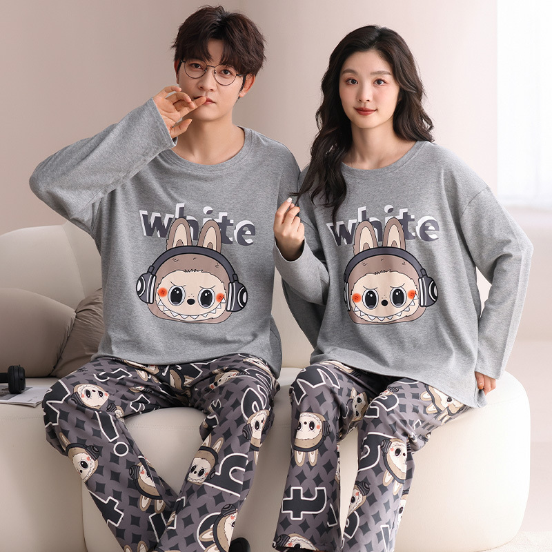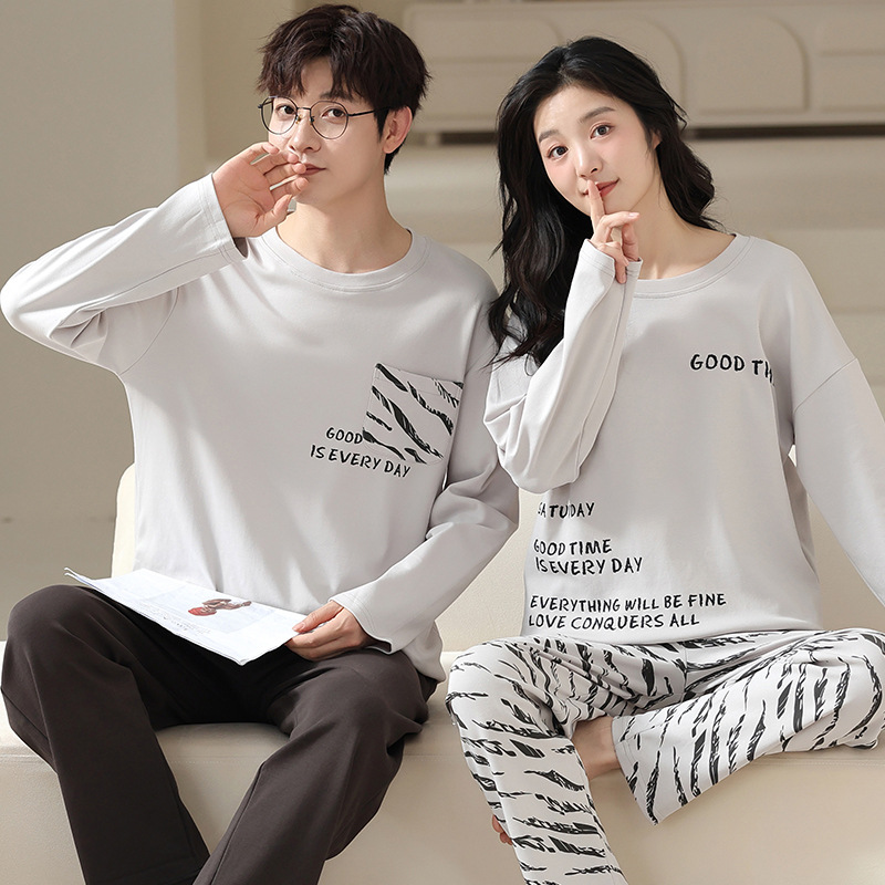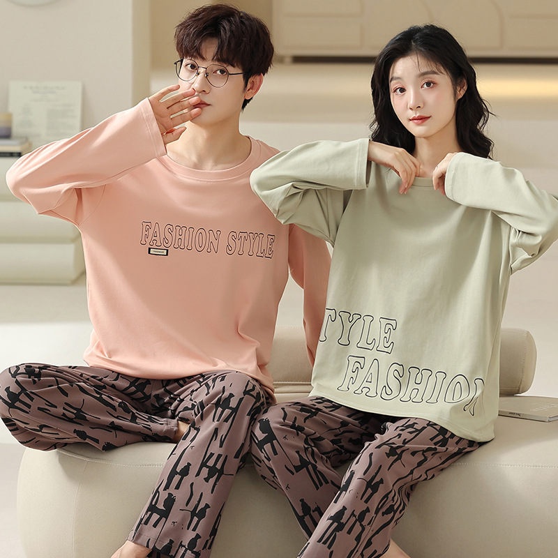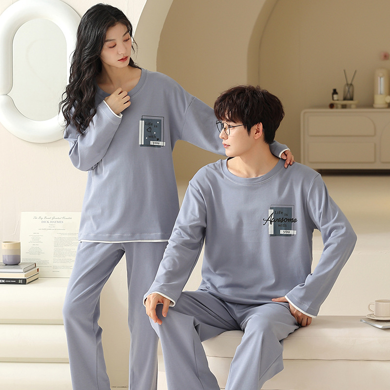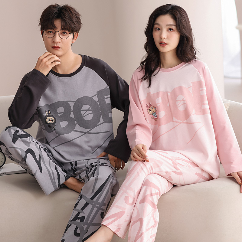 180g 면 커플 잠옷 가을 입고 풀오버 긴 소매 느슨한 캐주얼 가을 남녀 홈 의류 세트스토어 가기