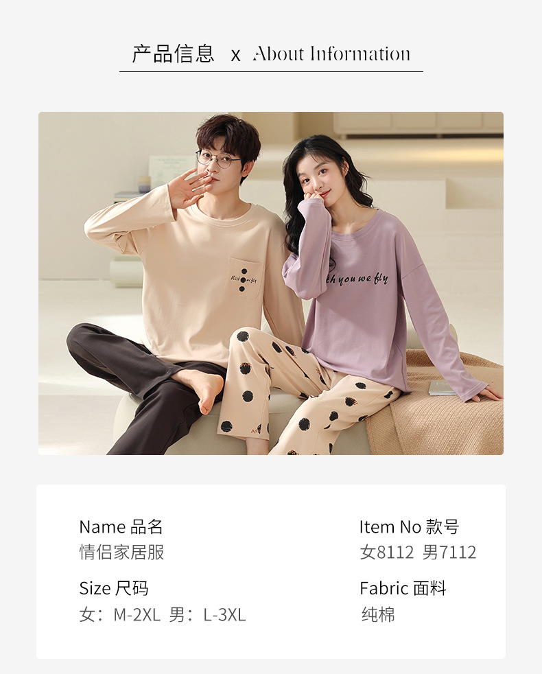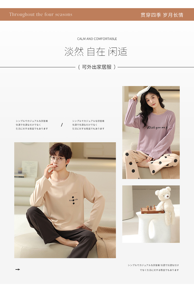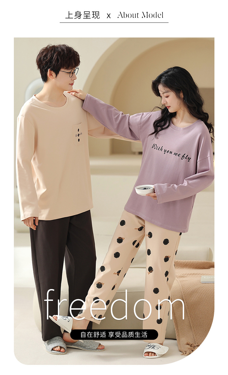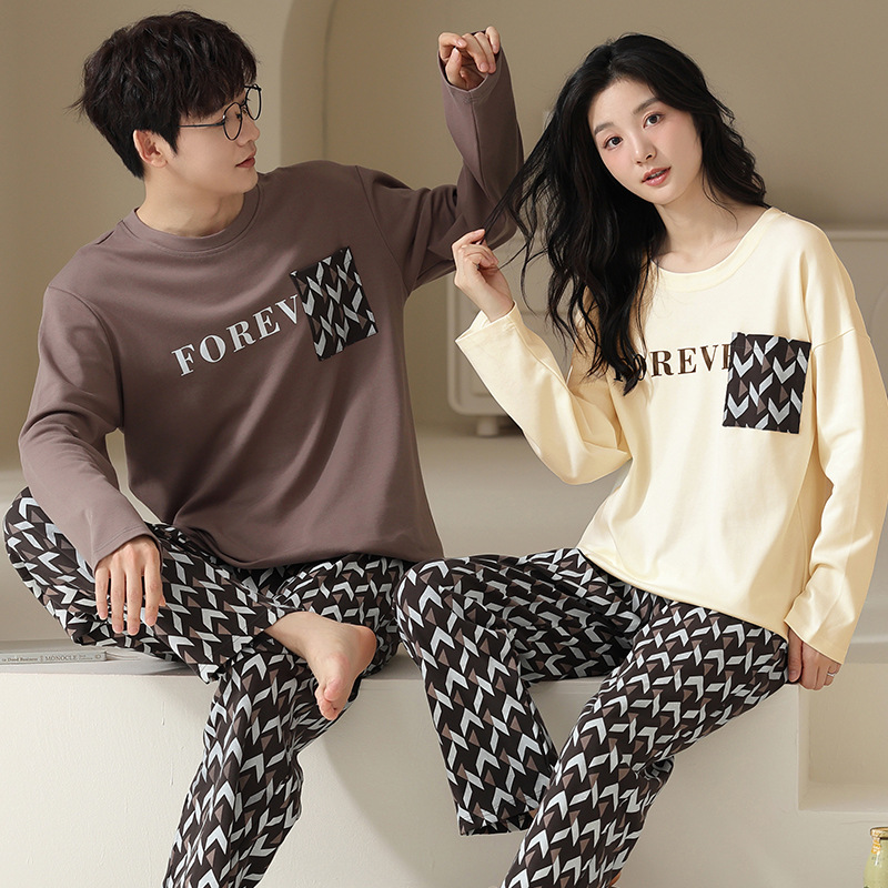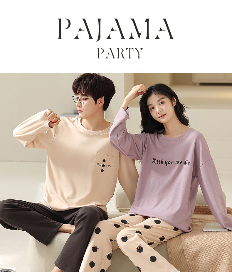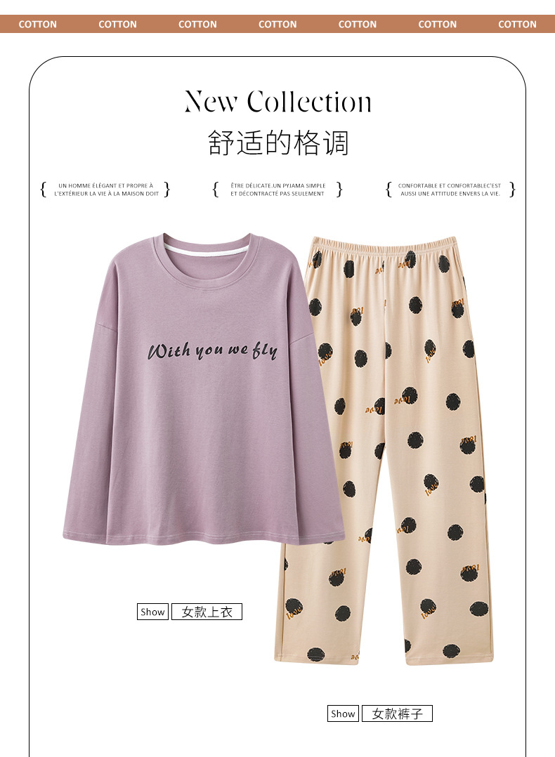180g 면 커플 잠옷 가을 입고 풀오버 긴 소매 느슨한 캐주얼 가을 남녀 홈 의류 세트스토어 가기
