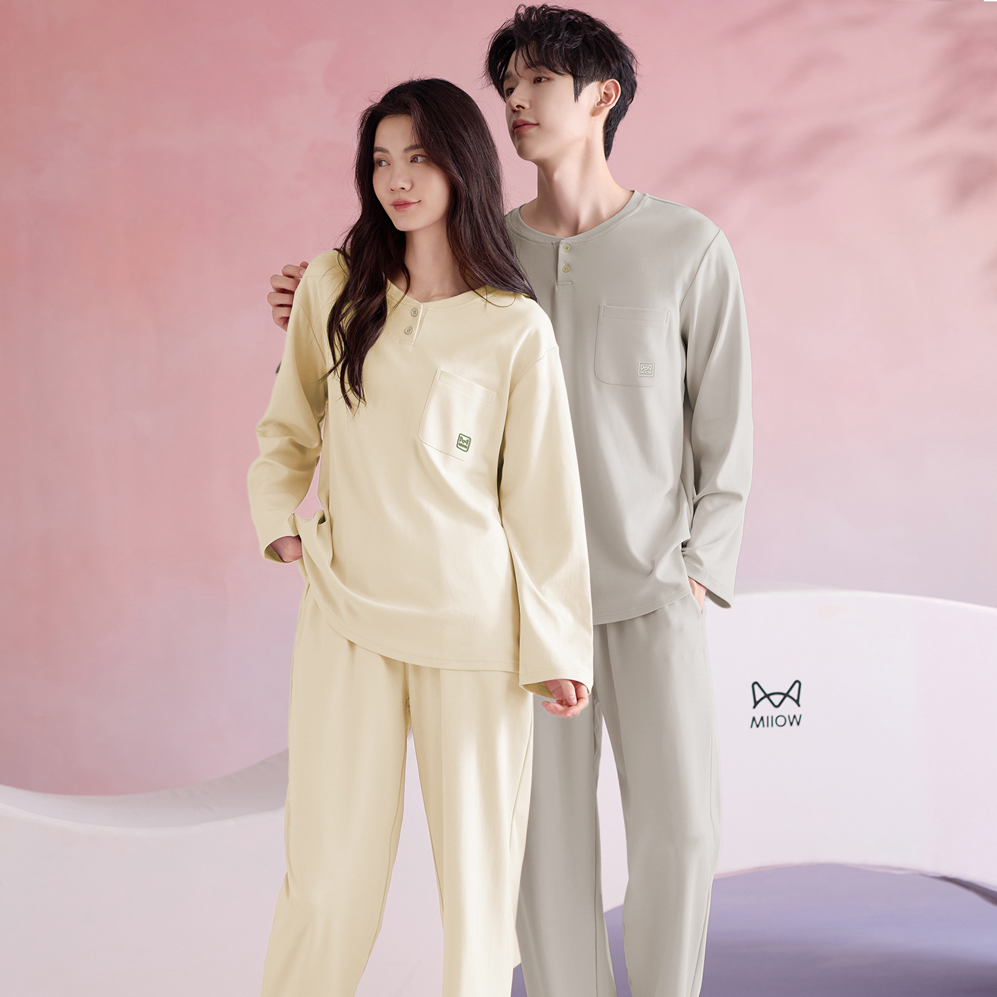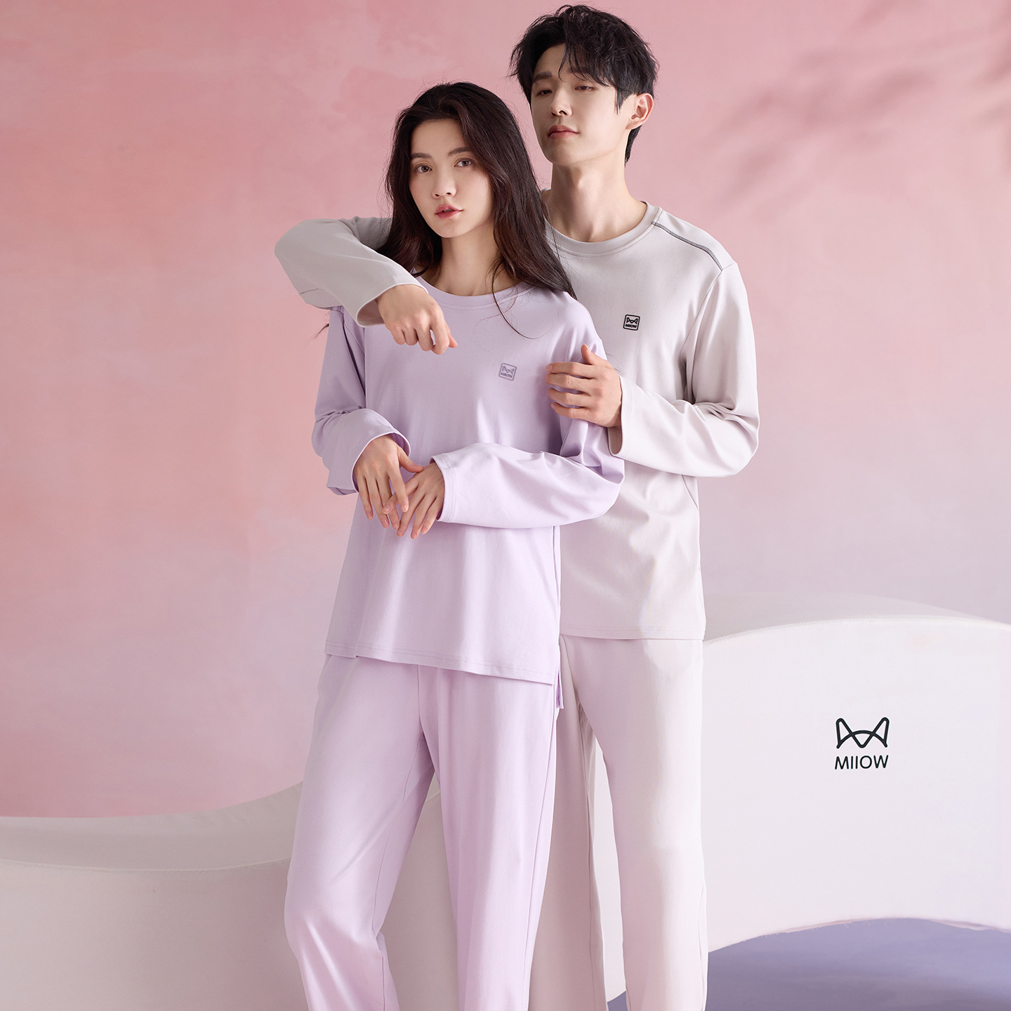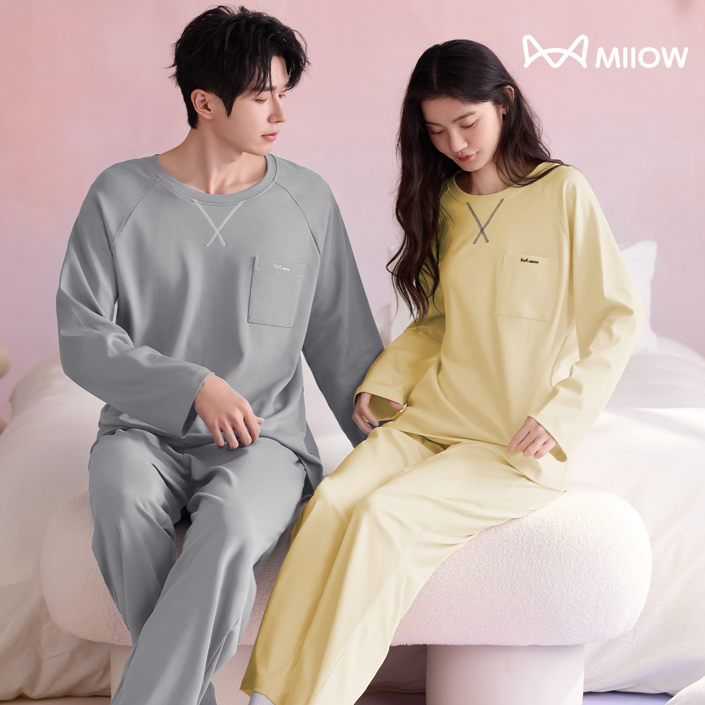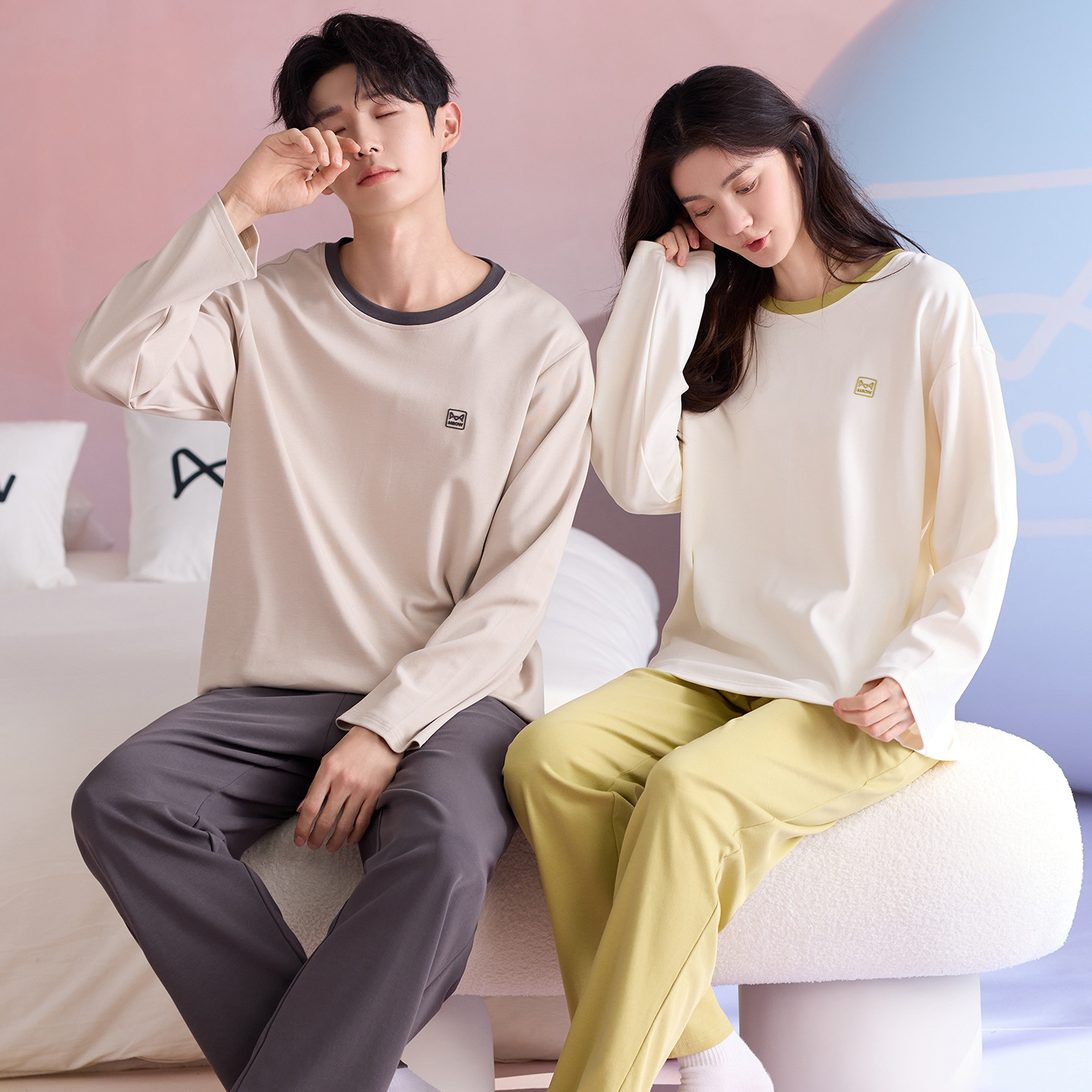 180g 면 커플 잠옷 가을 입고 풀오버 긴 소매 느슨한 캐주얼 가을 남녀 홈 의류 세트스토어 가기