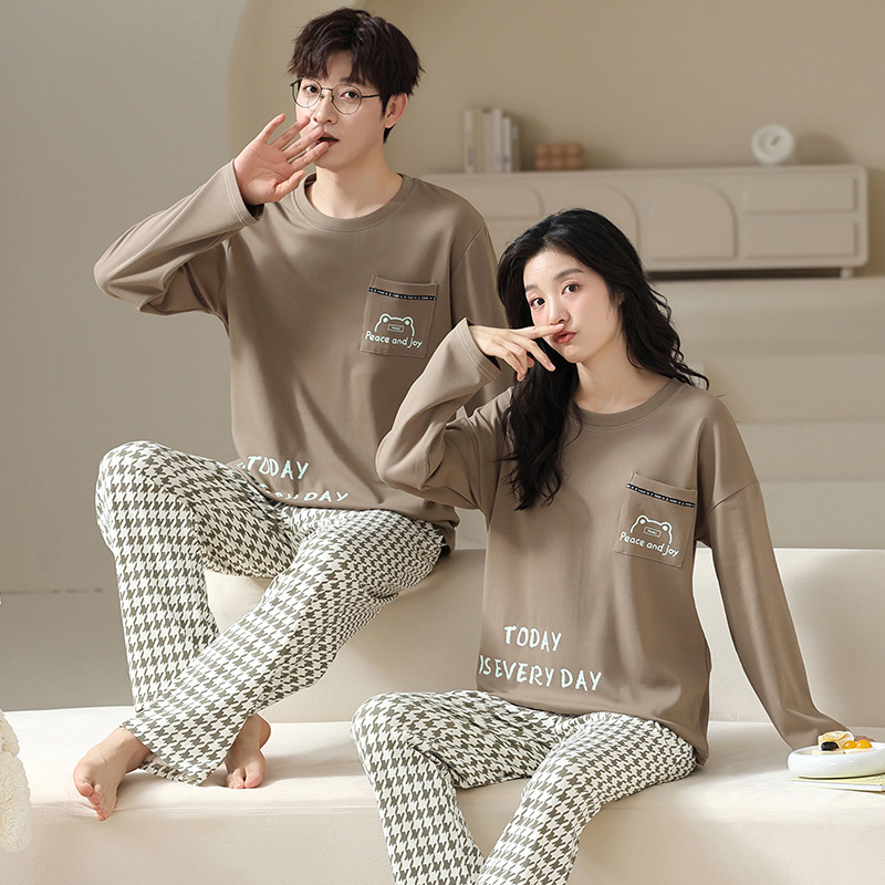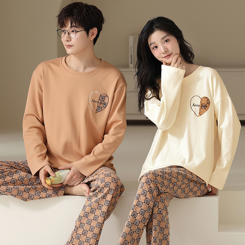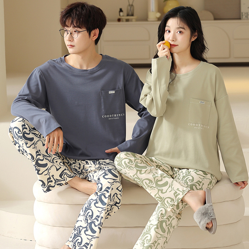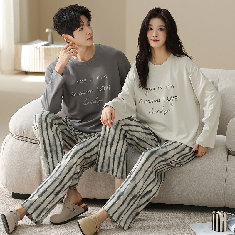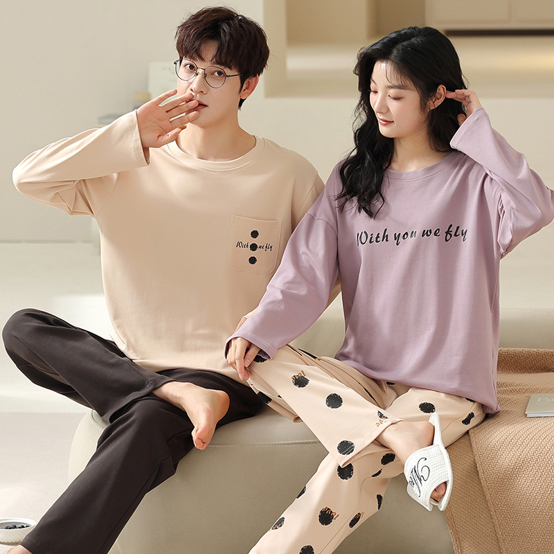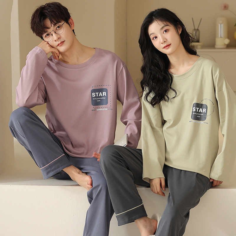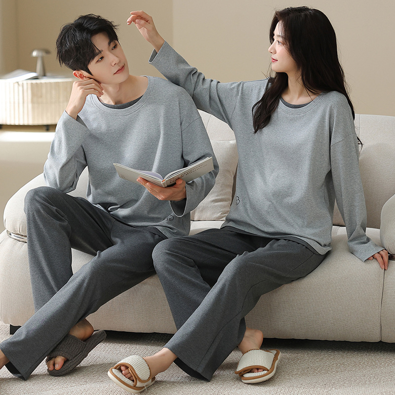 180g 면 커플 잠옷 가을 입고 풀오버 긴 소매 느슨한 캐주얼 가을 남녀 홈 의류 세트