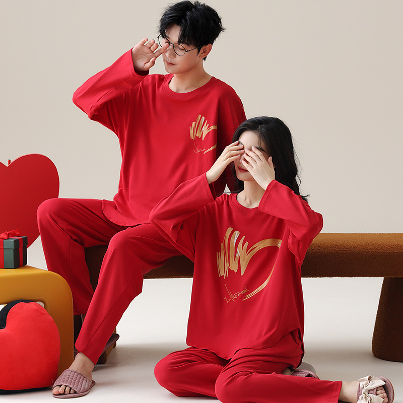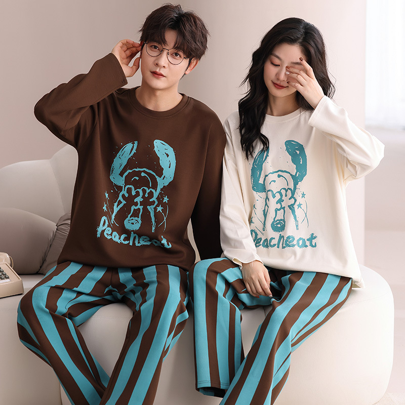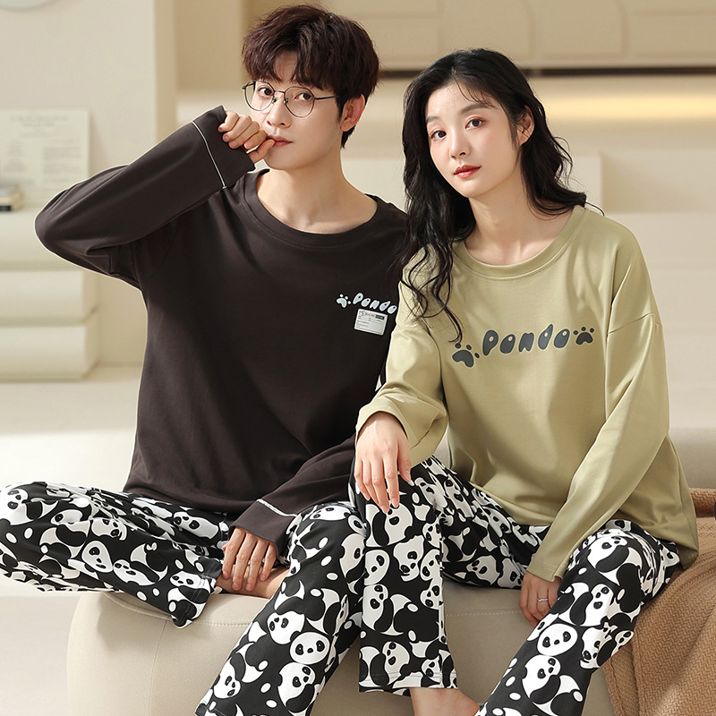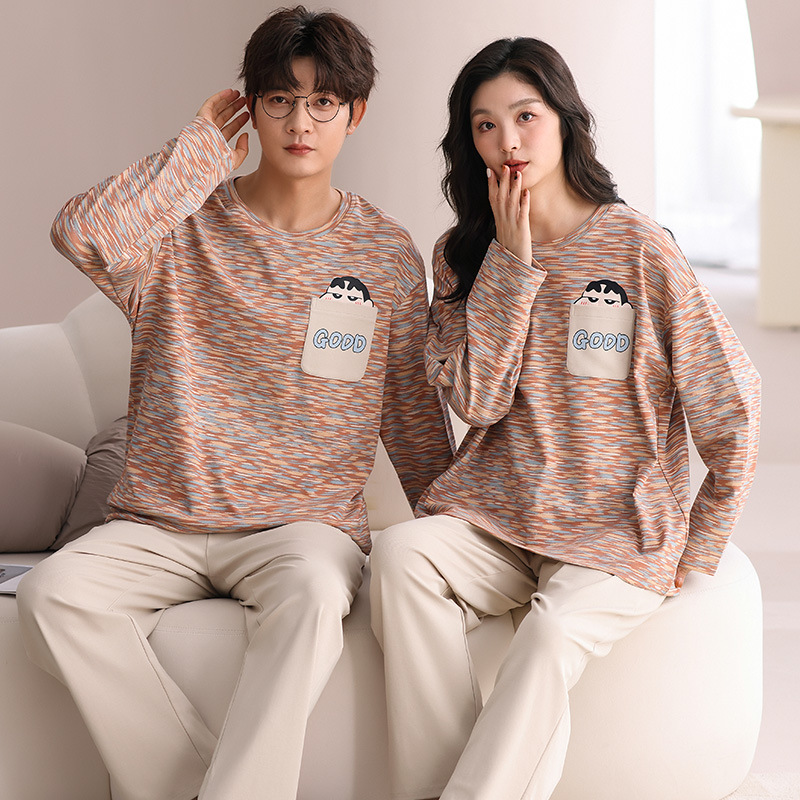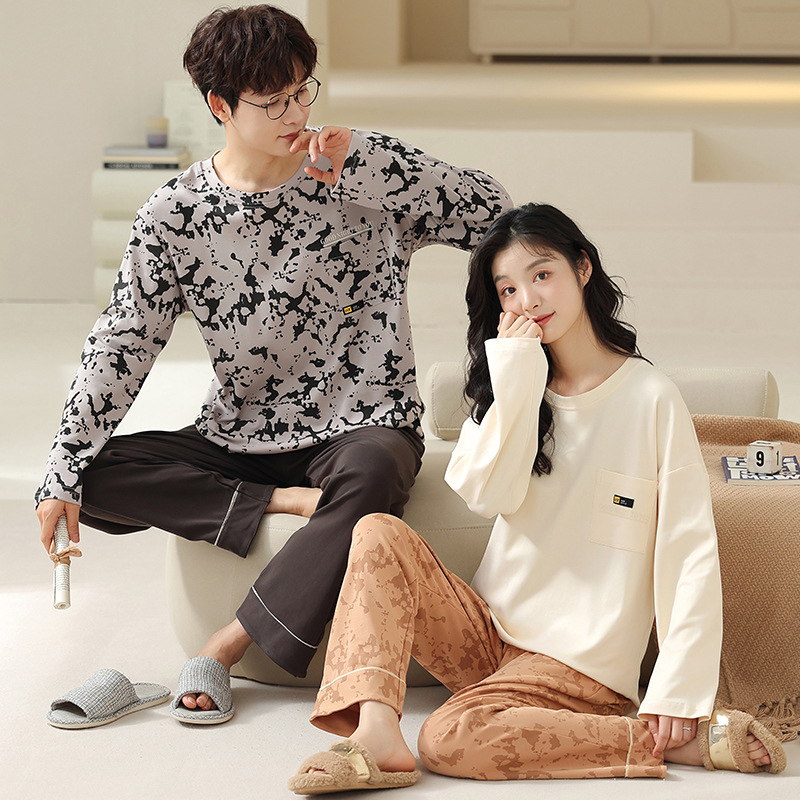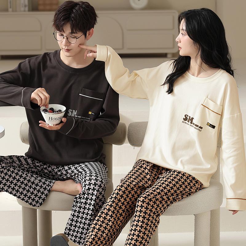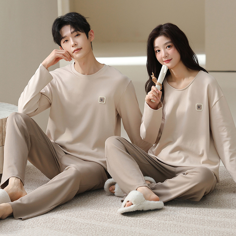 180g 면 커플 잠옷 가을 입고 풀오버 긴 소매 느슨한 캐주얼 가을 남녀 홈 의류 세트