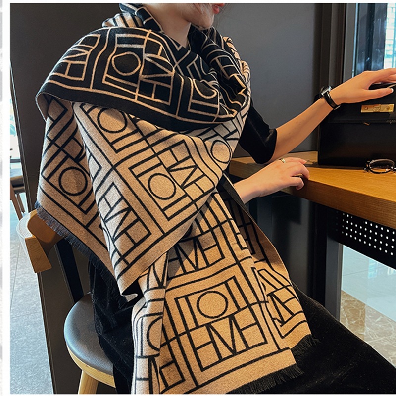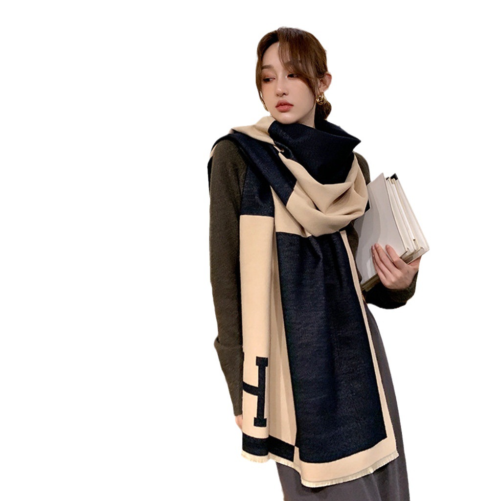 한국식 문자 디자인 다용도 컬러 매칭 양면 캐시미어 스카프 듀얼 사용 따뜻한 스카프 가을과 겨울 목도리 여성을위한