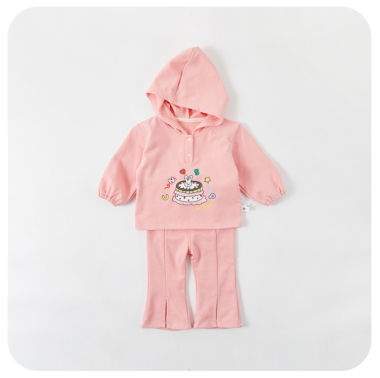 24 새로운 봄과 가을 아기 후드 스웨터 귀여운 플레어 바지 투피스 아기 옷 세트 롬퍼