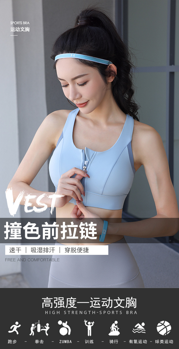 요가 의류 세트 고급 앞 지퍼 폭발 방지 스포츠 속옷 여성 충격 방지 달리기 피트니스 스포츠 백 브래지어스토어 가기