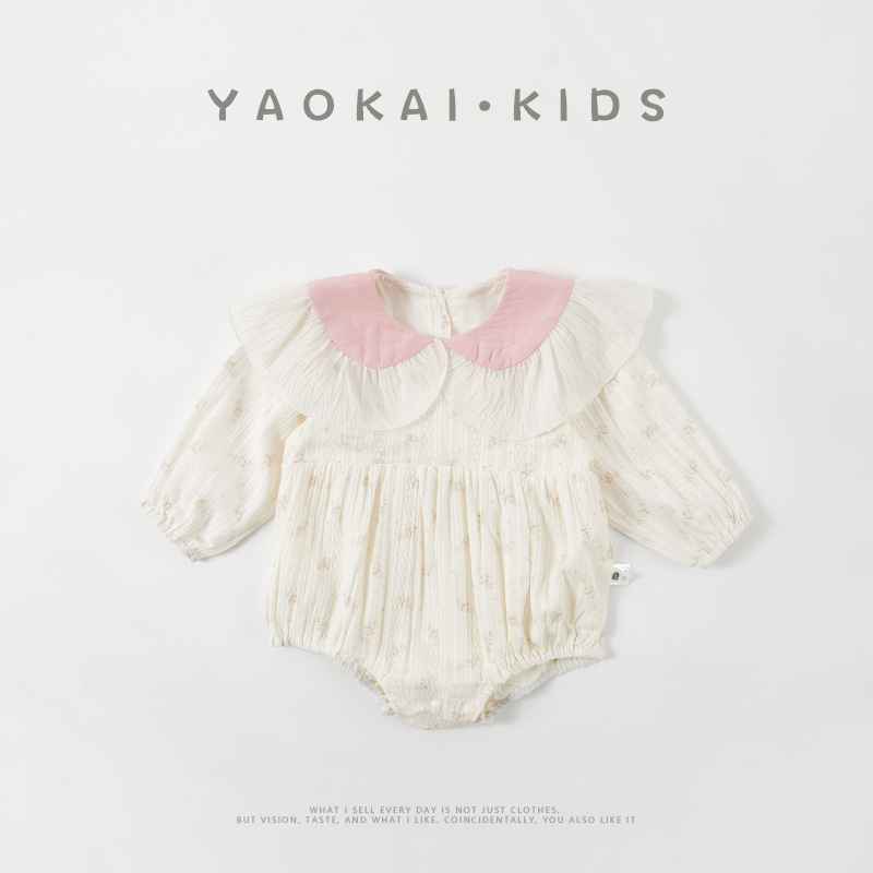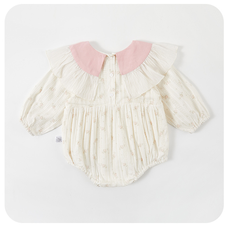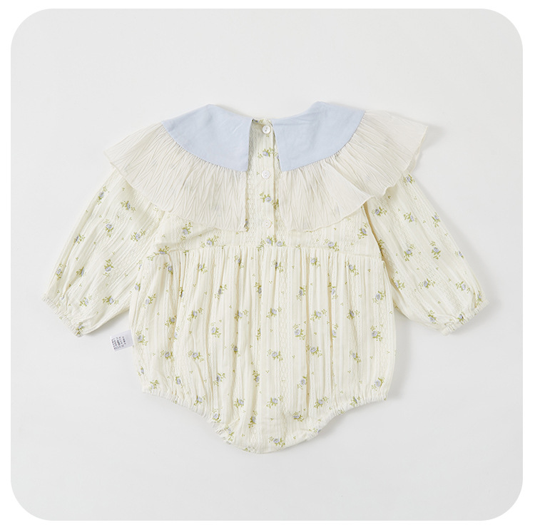 24 봄과 가을 새로운 아기 점프 수트 신생아 칼집 옷 바느질 옷깃 꽃 아기 옷 장난 꾸러기스토어 가기