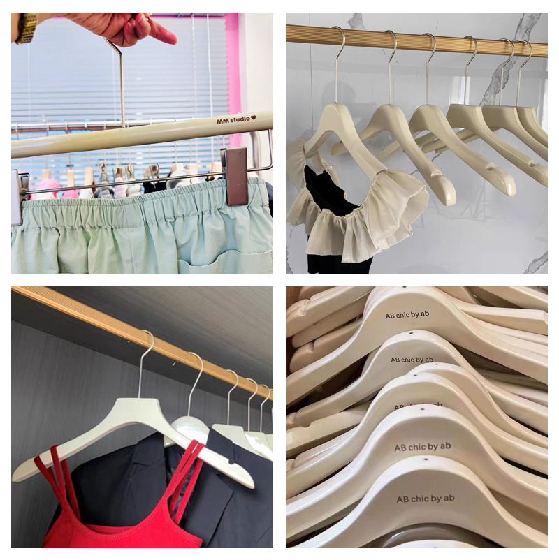 의류 매장 옷 걸이 조각 여성 의류 매장 단단한 나무 미끄럼 방지 옷 지원 도매 원활한 바지 랙 나무 빛 럭셔리 건조스토어 가기