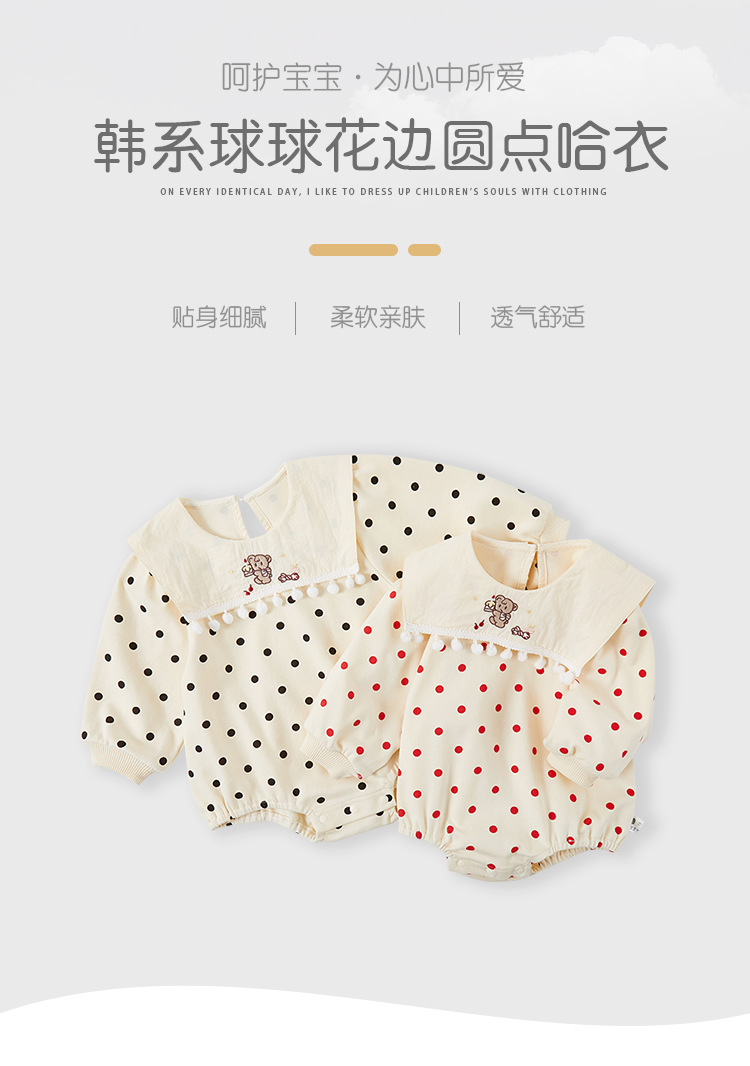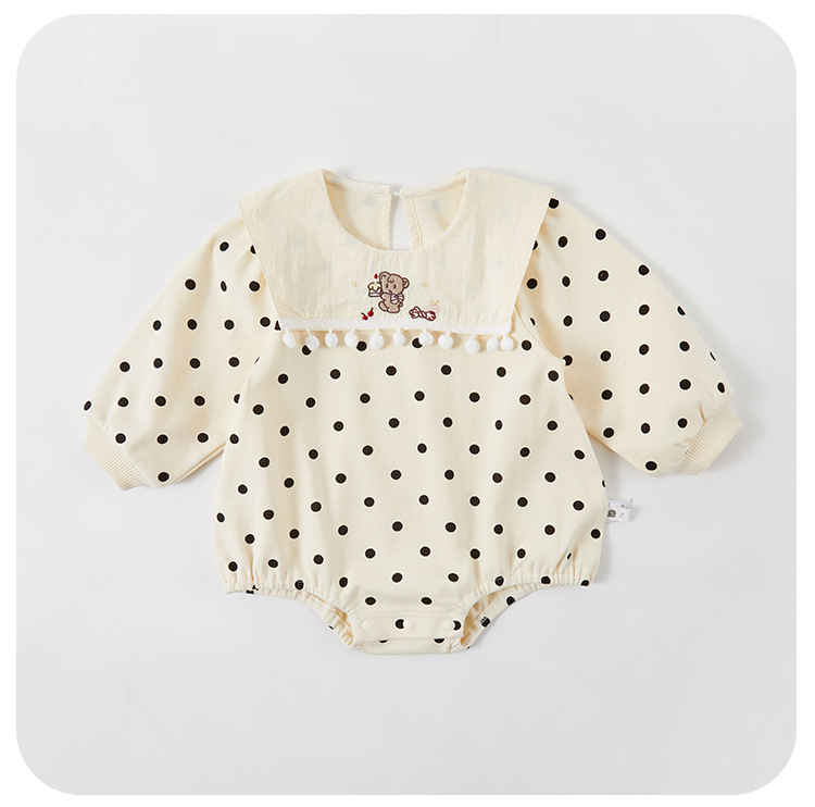 귀여운 아기 소녀 옷 폴카 도트 옷깃 신생아 칼집 옷 봄과 가을 아기 원피스 롬퍼 롬퍼