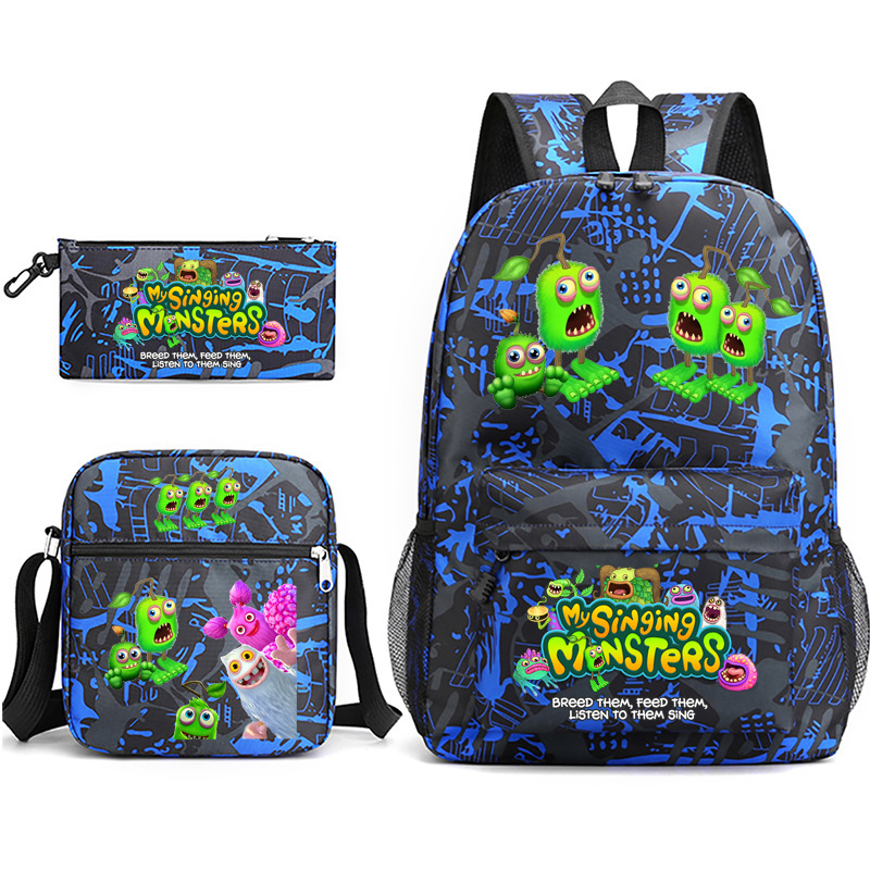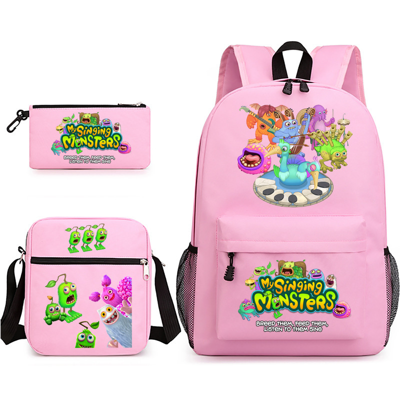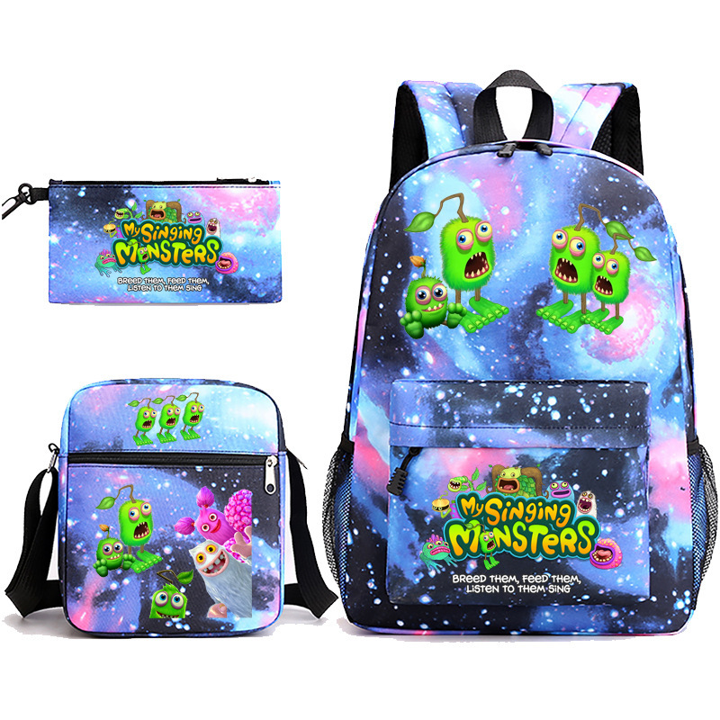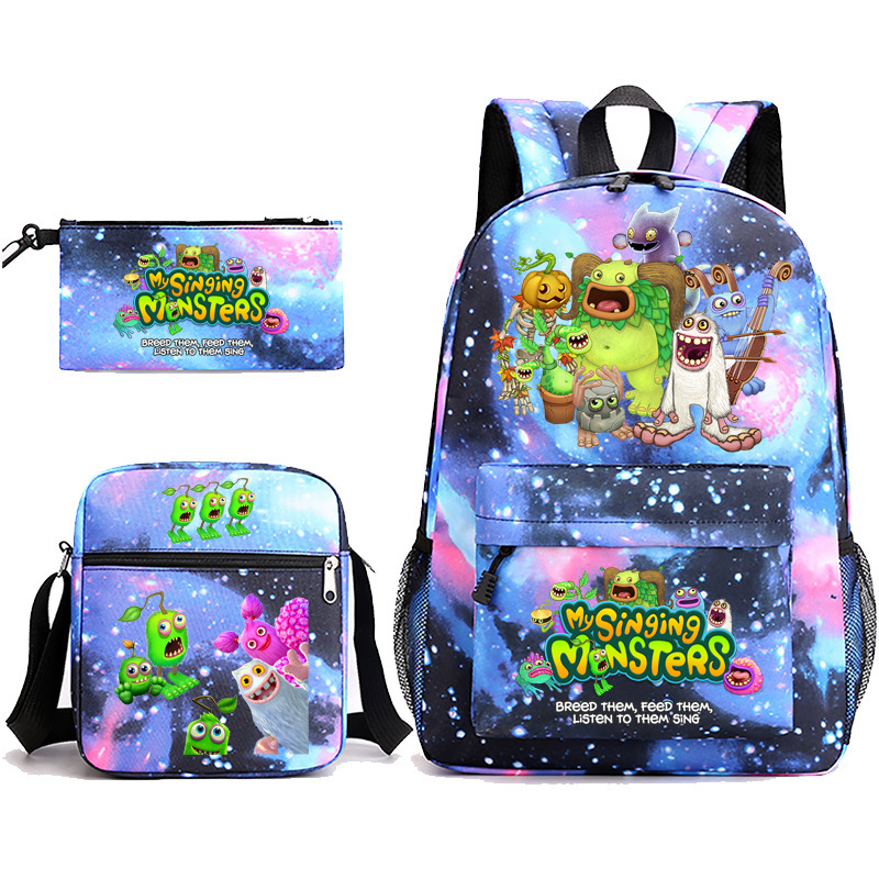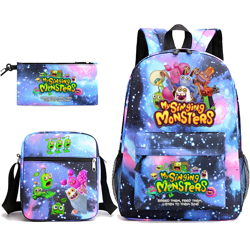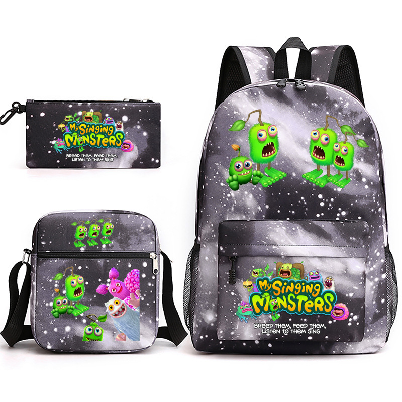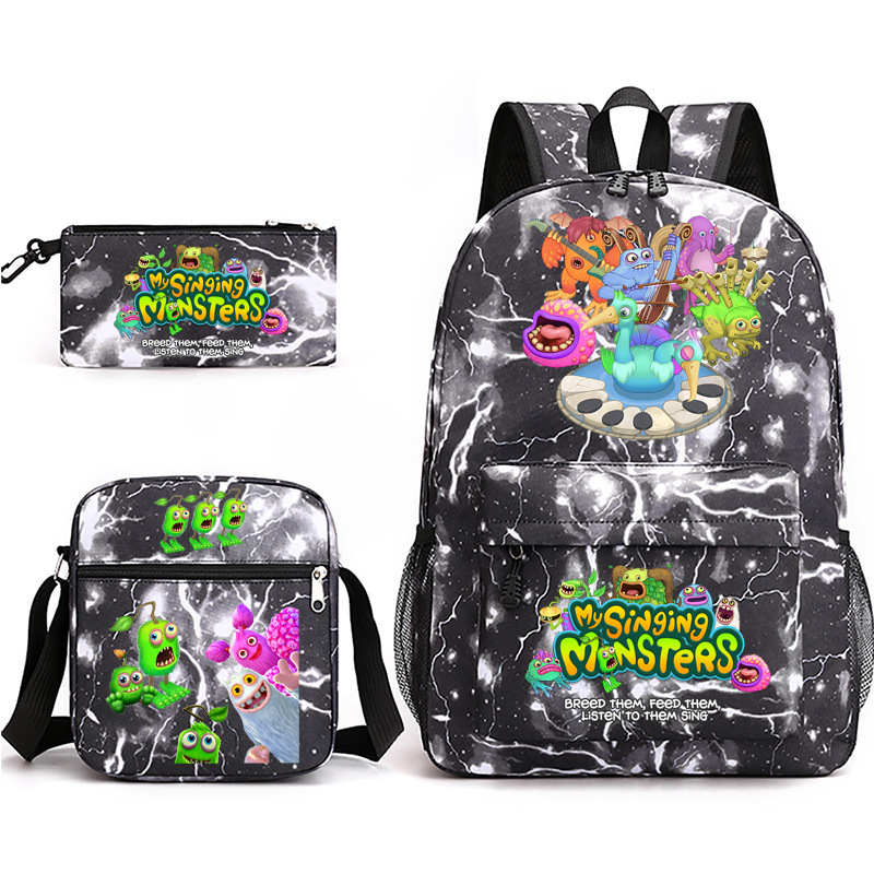 2023 새로운 게임 몬스터 콘서트 내 노래 괴물 배낭 연필 케이스 어깨 가방 3 조각 세트