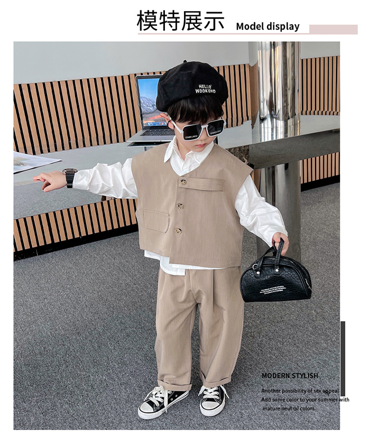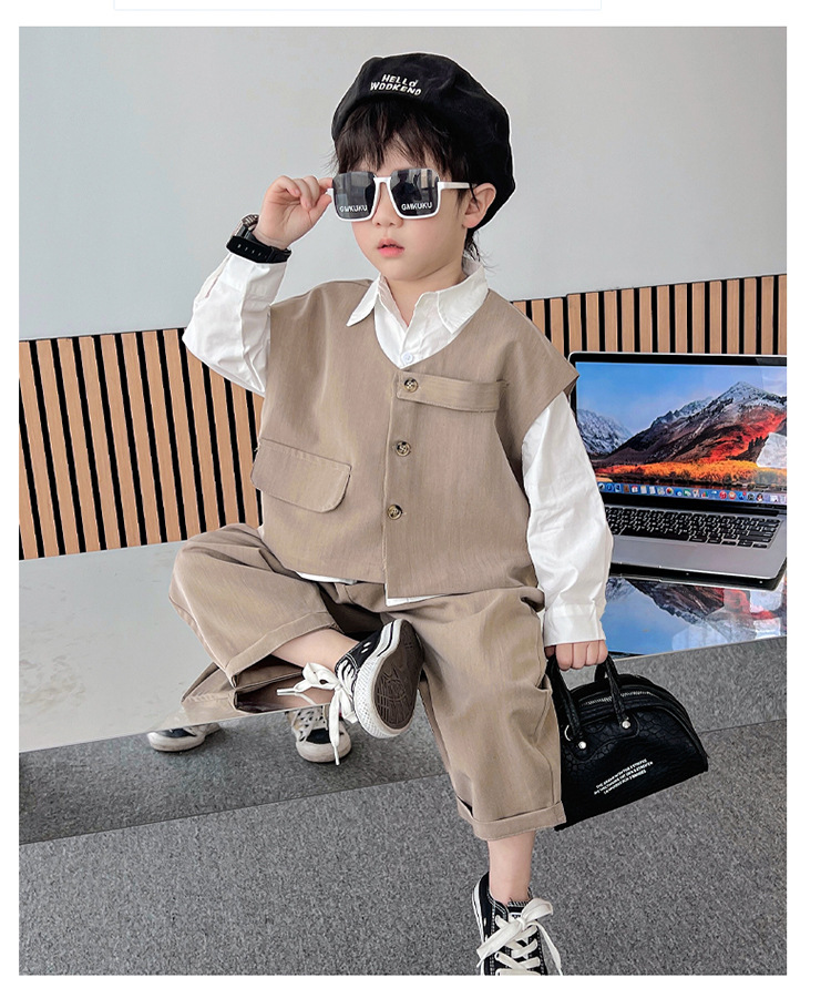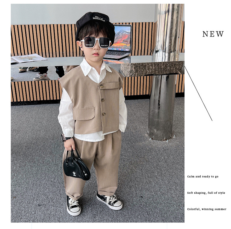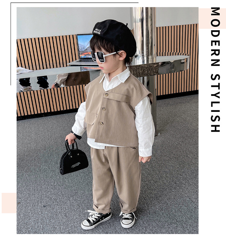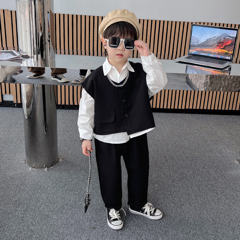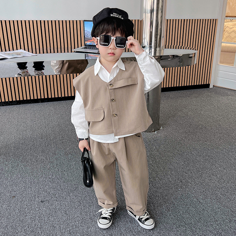 소년 봄 의류 정장 2025 봄과 가을 새로운 스타일 잘 생긴 아기 소년 인터넷 연예인 유행 조끼 3 피스 옷 유행스토어 가기