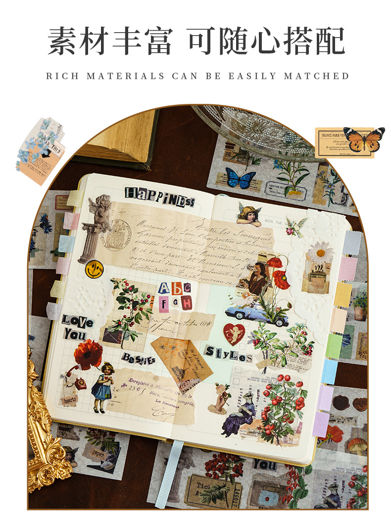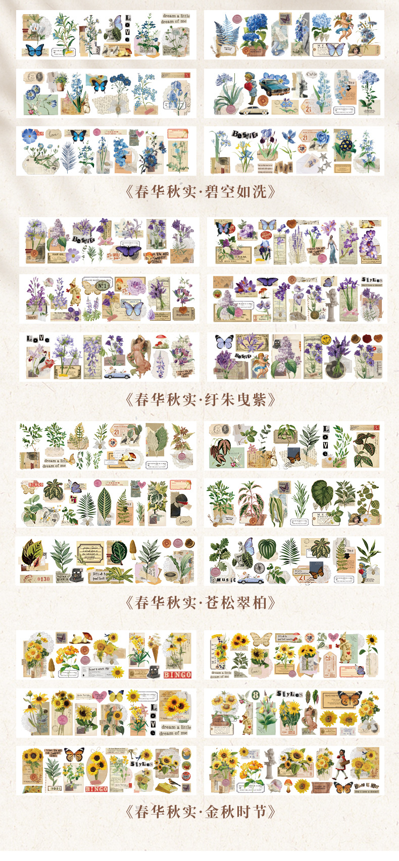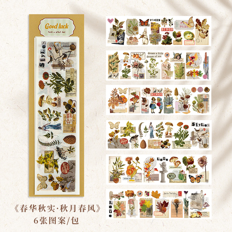 신선한 봄과 가을 빈티지 식물 꽃 스티커 및 종이 장식 학생 재료 손 계정 DIY 스티커스토어 가기