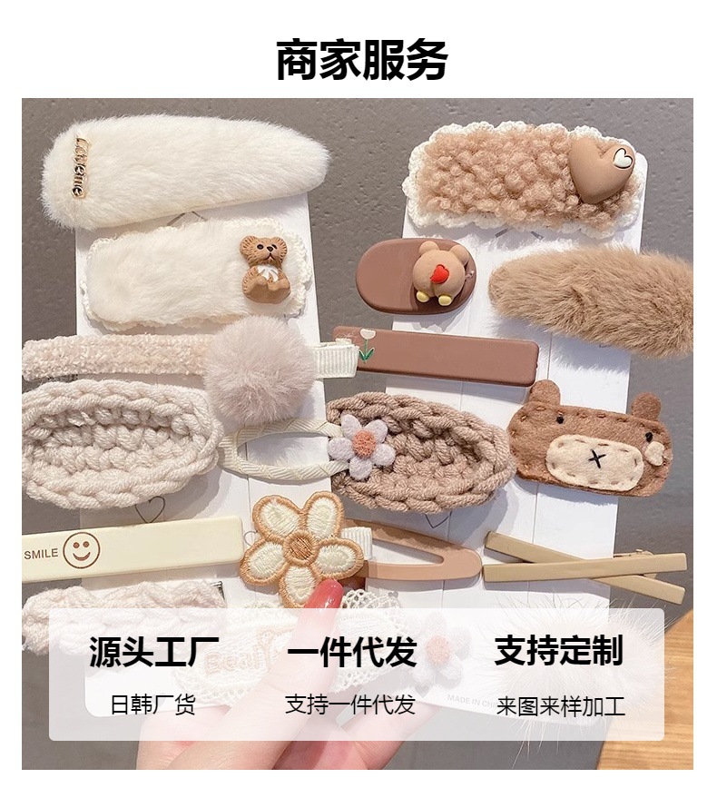 봉제 머리핀 가을과 겨울 머리핀 여성 2024 새로운 어린이 클립 머리 장식 사이드 앞머리 클립 귀여운 클립 헤어 액세서리스토어 가기