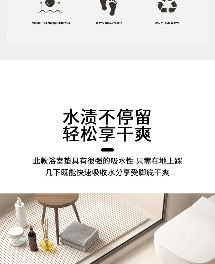 • 50CM × 80CM [욕실 매트 흡수성 미끄럼 방지]]
