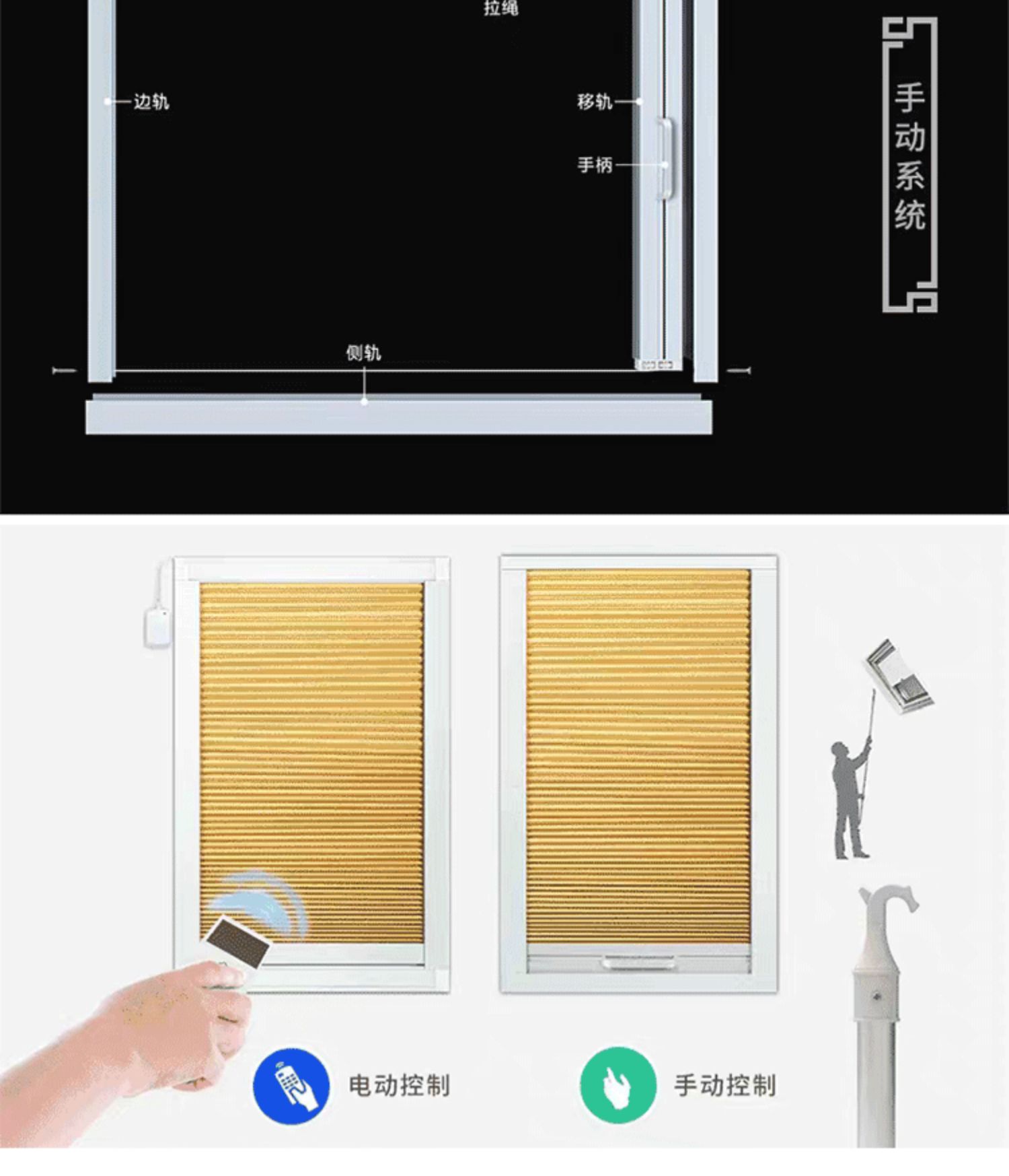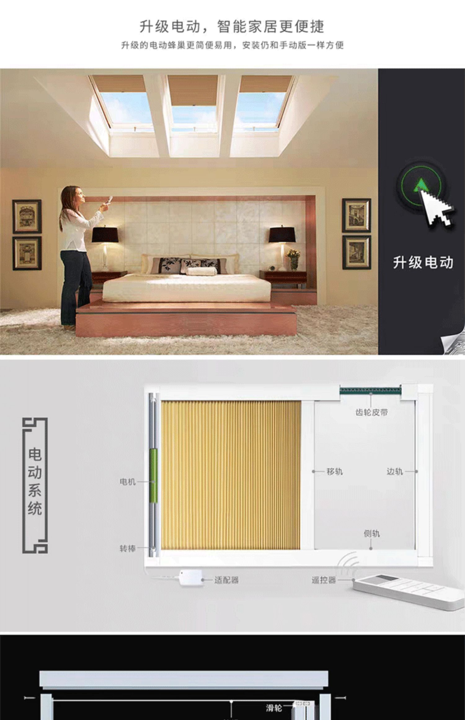 A5L 선샤인 룸 채광창 유리 지붕 커튼 차양 지능형 전기 수동 천장 커튼 단열 벌집 커튼 청두스토어 가기