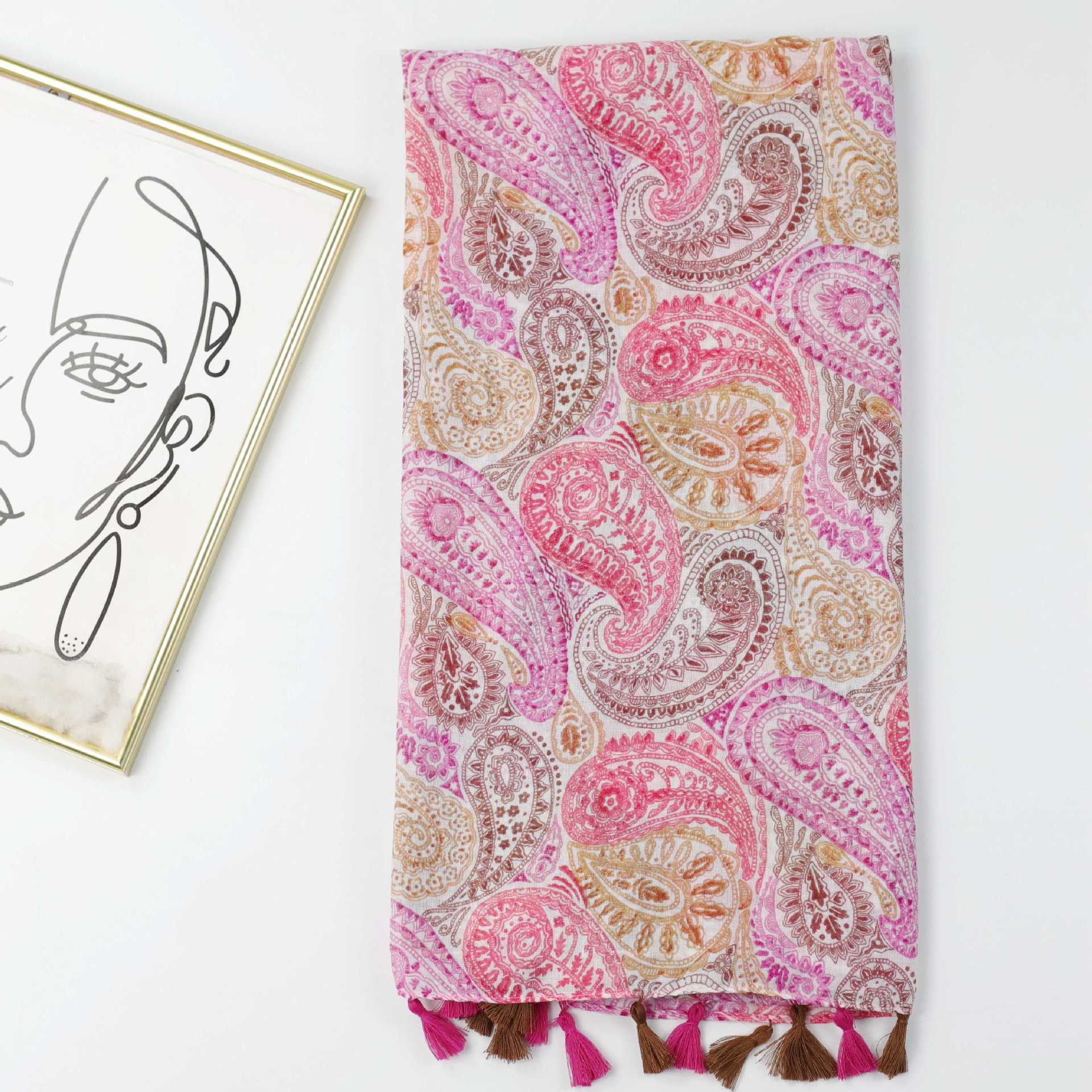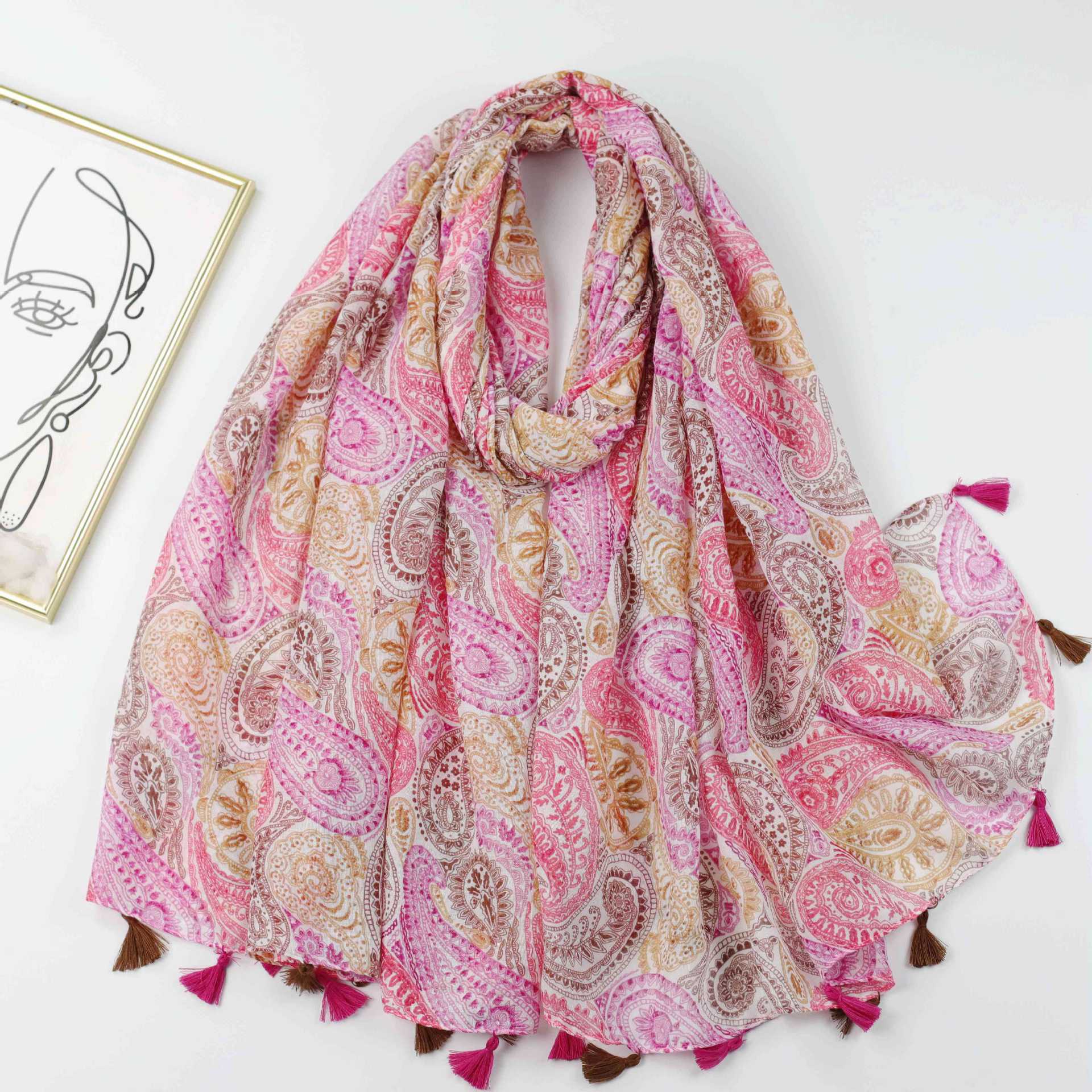 공장 판매 대외 무역 국경 컬러 캐슈 너트 프린트 실크 스카프 암호화 발리 원사 여성용 긴 스카프 봄과 여름 스카프 숄