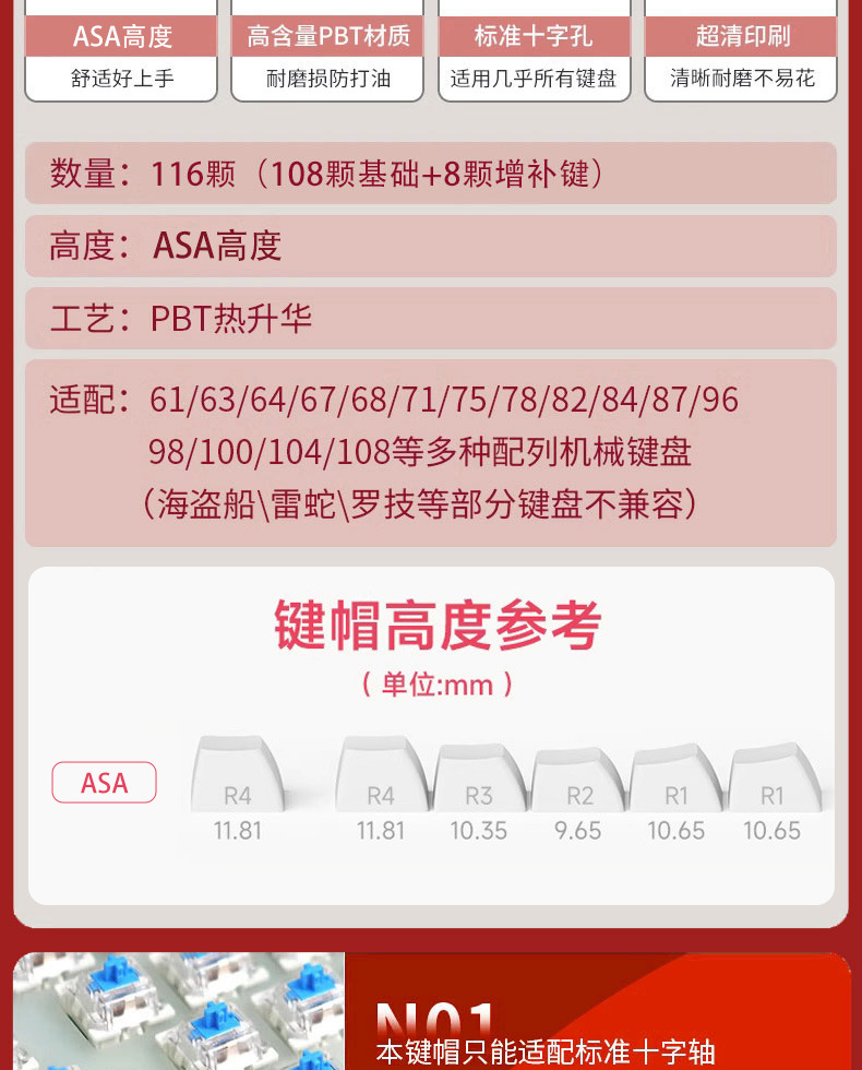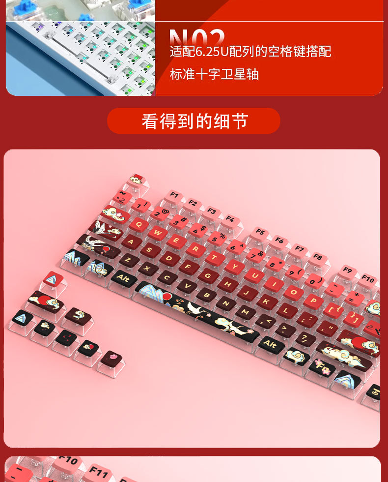 PC 측면 투명 PBT 승화 이중 피부 우유 푸딩 기계 키보드 키 캡 맞춤형 그라디언트 ASA 높이