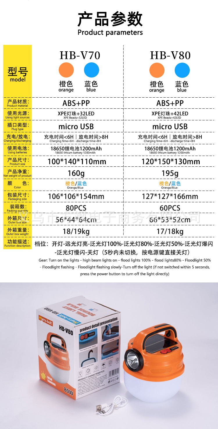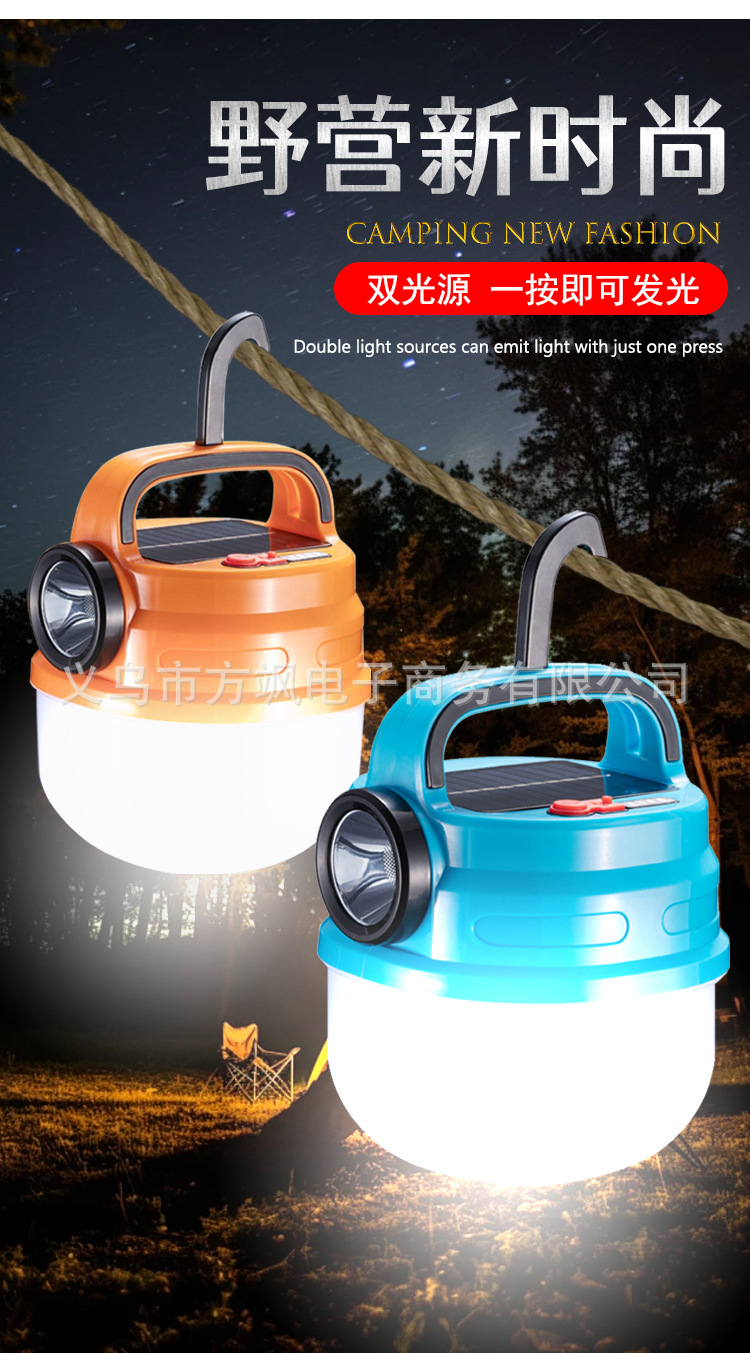 새로운 태양 캠핑 램프 다기능 충전 캠핑 램프 비상 램프 텐트 램프 이중 광원 조명 캠프 램프스토어 가기