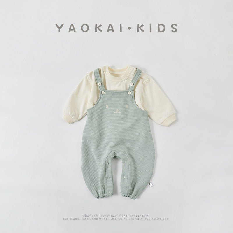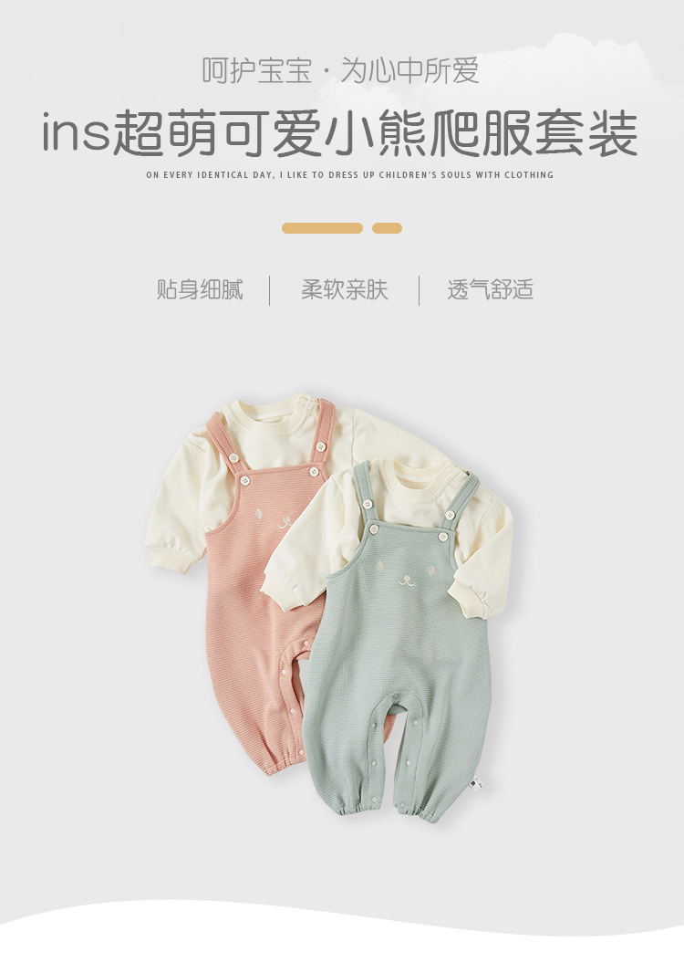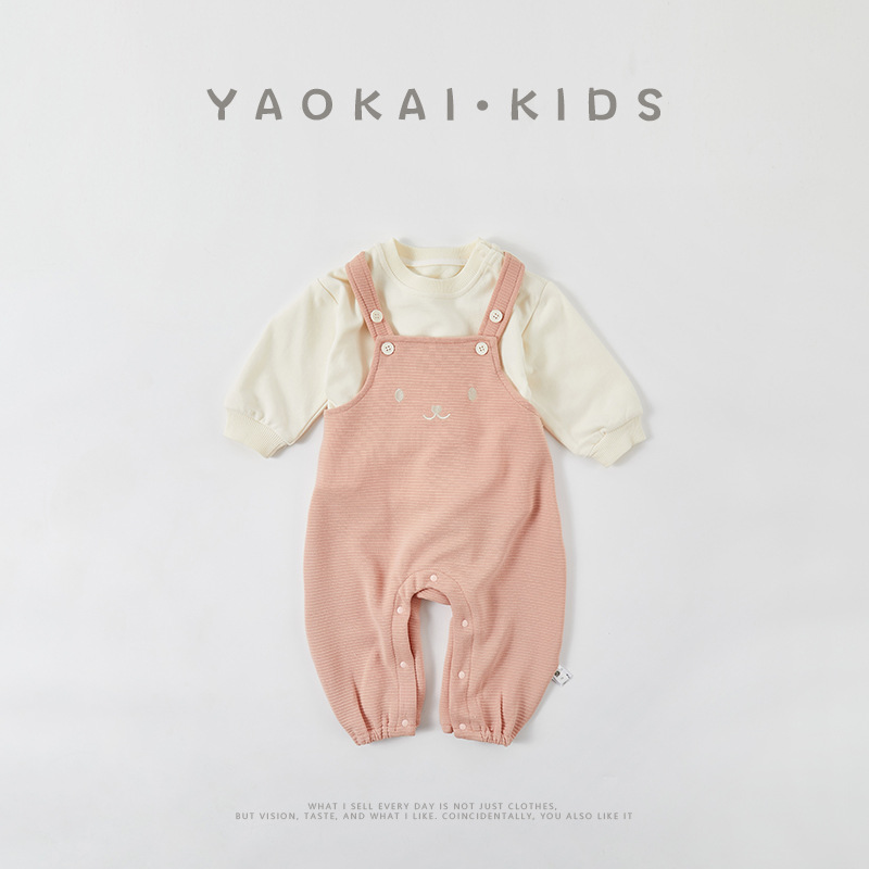 아기 옷 세트 봄과 가을 새로운 스웨터 서스펜더 바지 아기 소녀 달콤한 귀여운 점프 수트 롬퍼