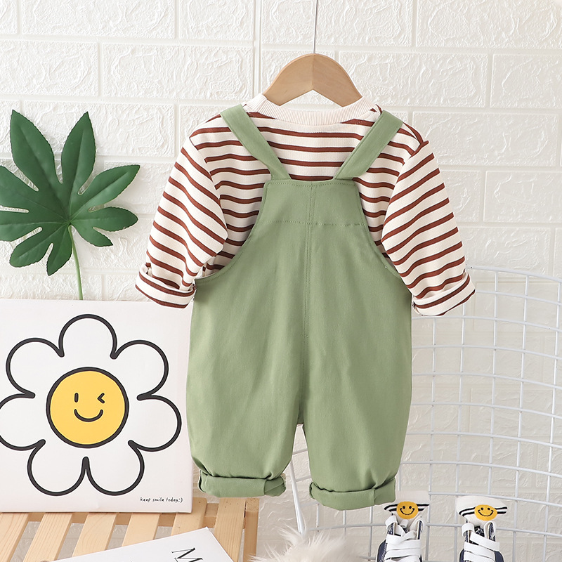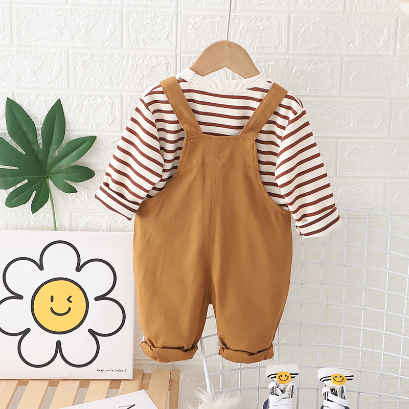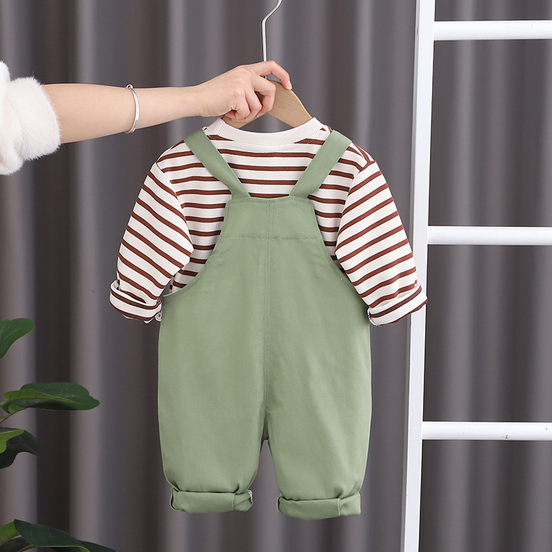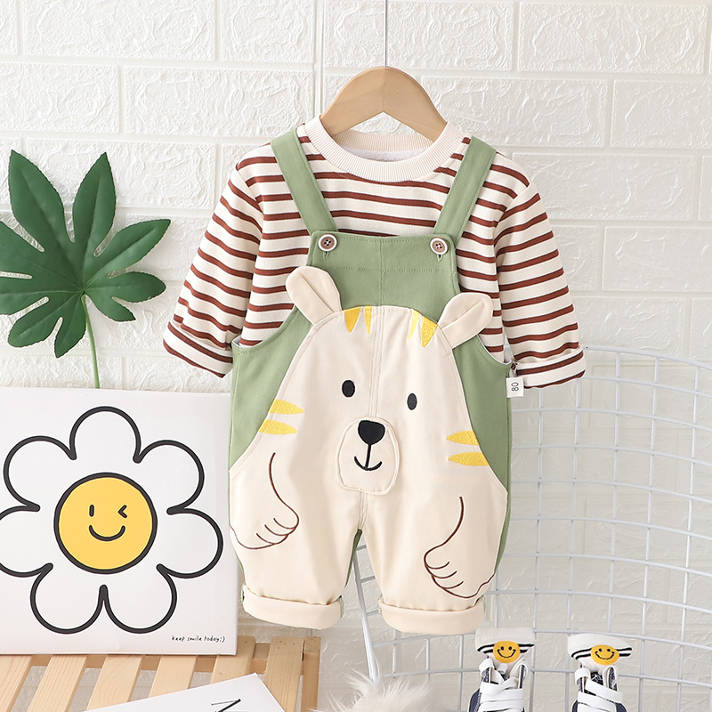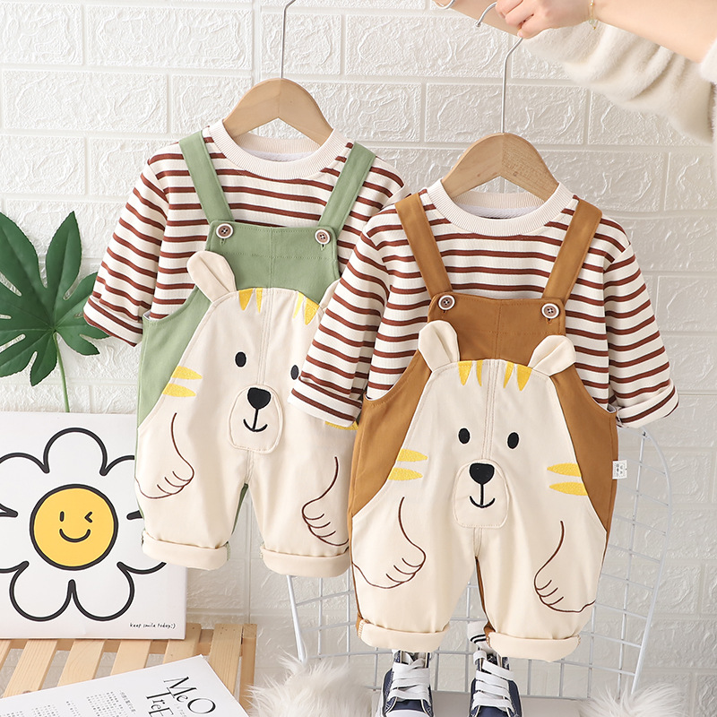 남자들의 봄 옷 투피스 세트 서양식 어린이 줄무늬 스웨터 컬러 매칭 곰 서스펜더 바지 공장 도매 패션 패션스토어 가기