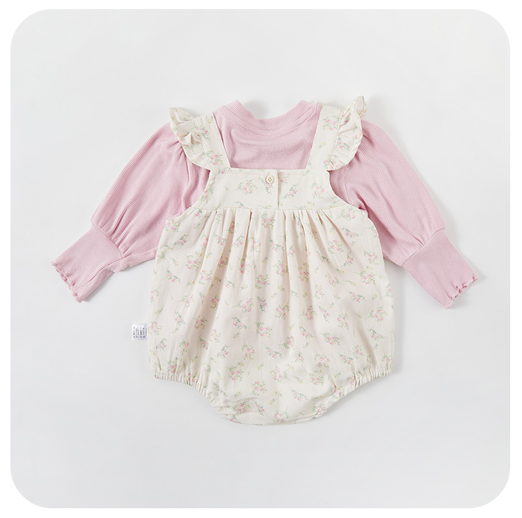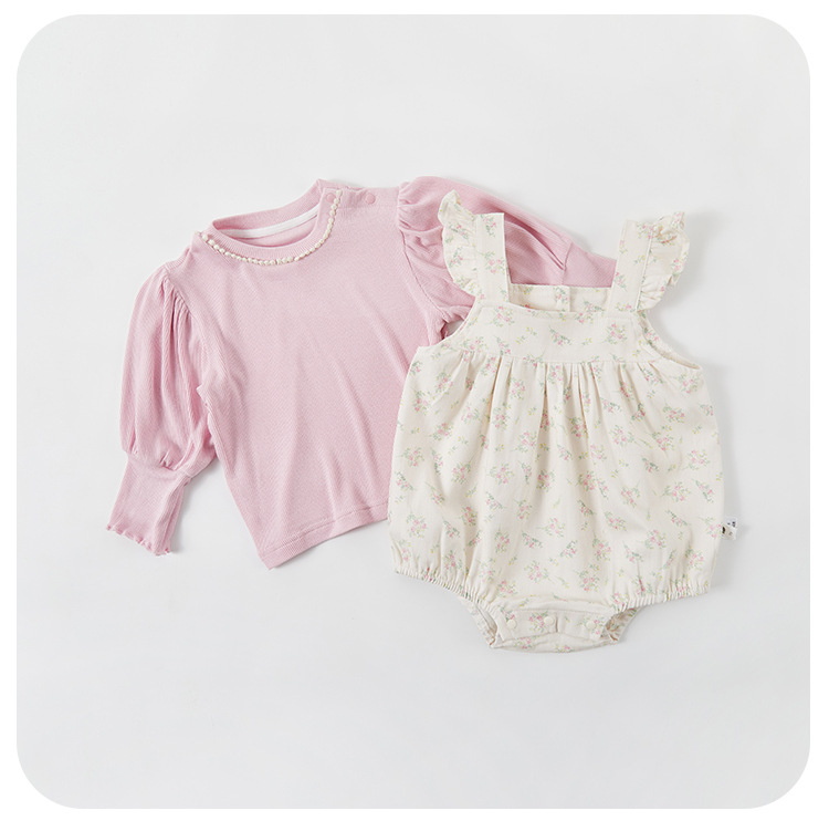 아기 소녀 한 달 된 달콤한 귀여운 세트 신생아 칼집 아기 탑 서스펜더 가방 방귀 투피스 세트스토어 가기