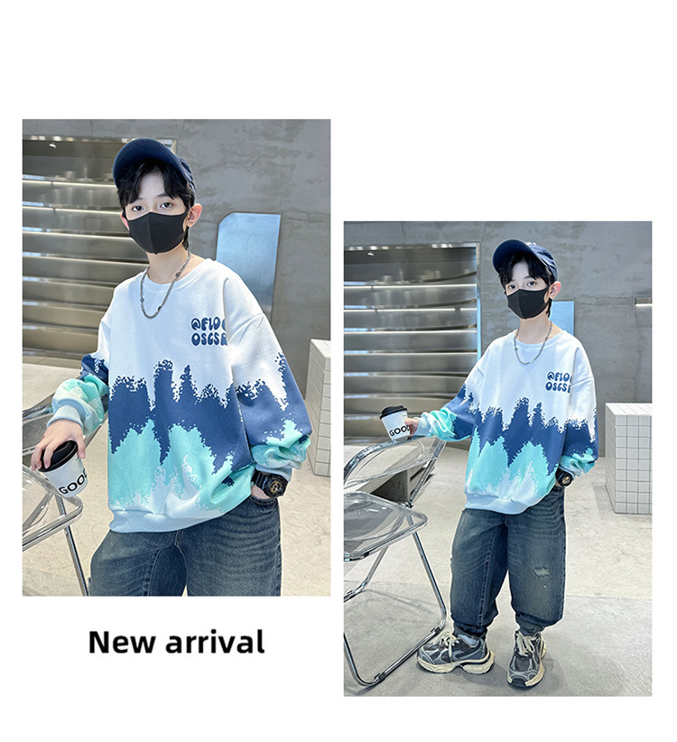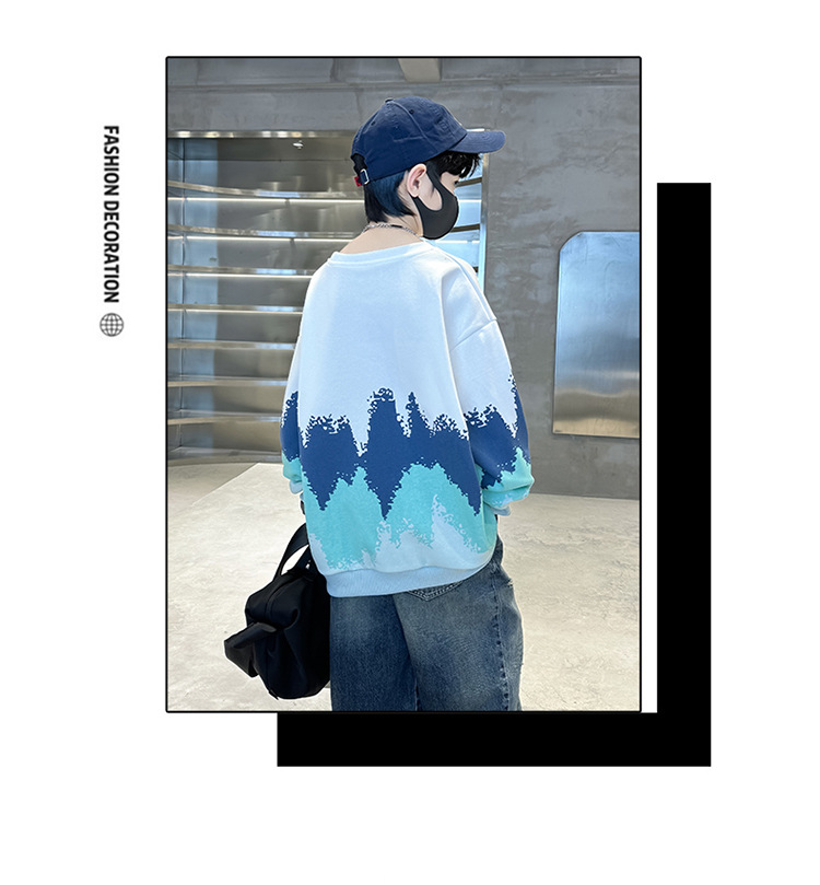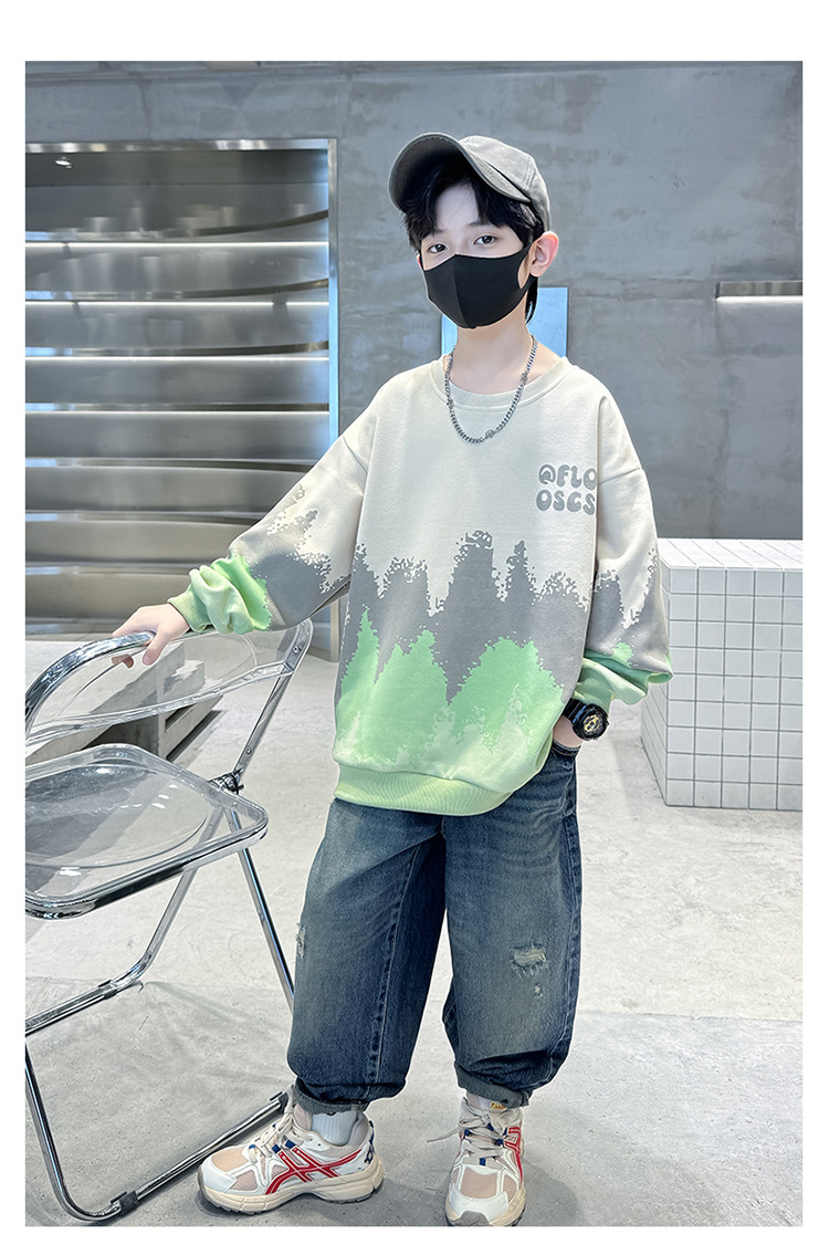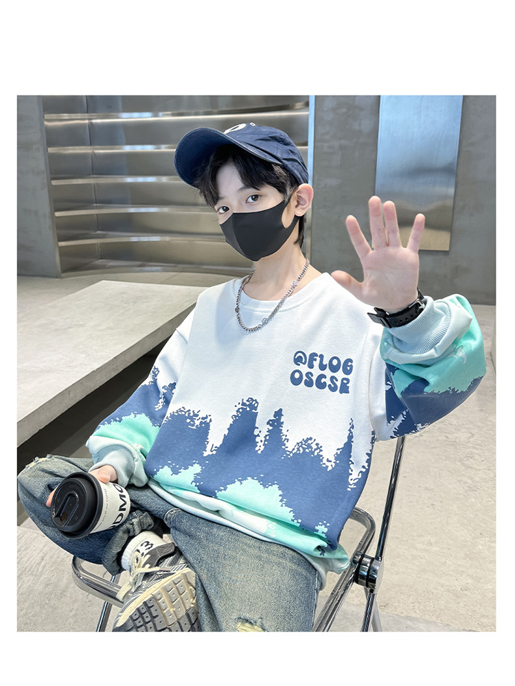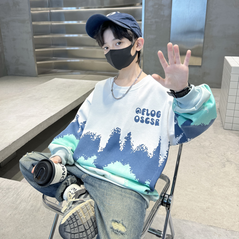 어린이 착용 소년 스웨트 셔츠 봄과 가을 2024 새로운 소년 봄 긴 소매베이스 셔츠 큰 어린이를위한 웨스턴 스타일 트렌디 쿨스토어 가기