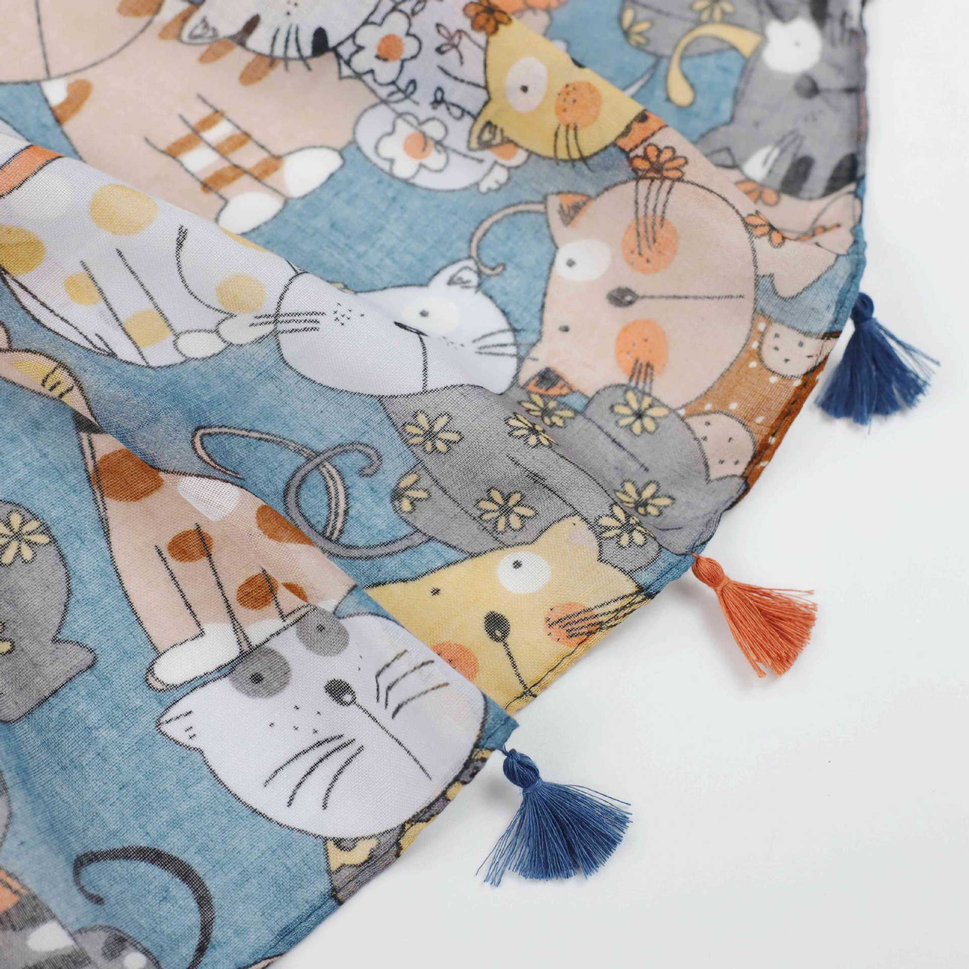 공장 판매 대외 무역 국경 만화 큰 얼굴 고양이 인쇄 실크 스카프 암호화 된 발리 원사 여성의 긴 스카프 봄과 여름 스카프 목도리스토어 가기