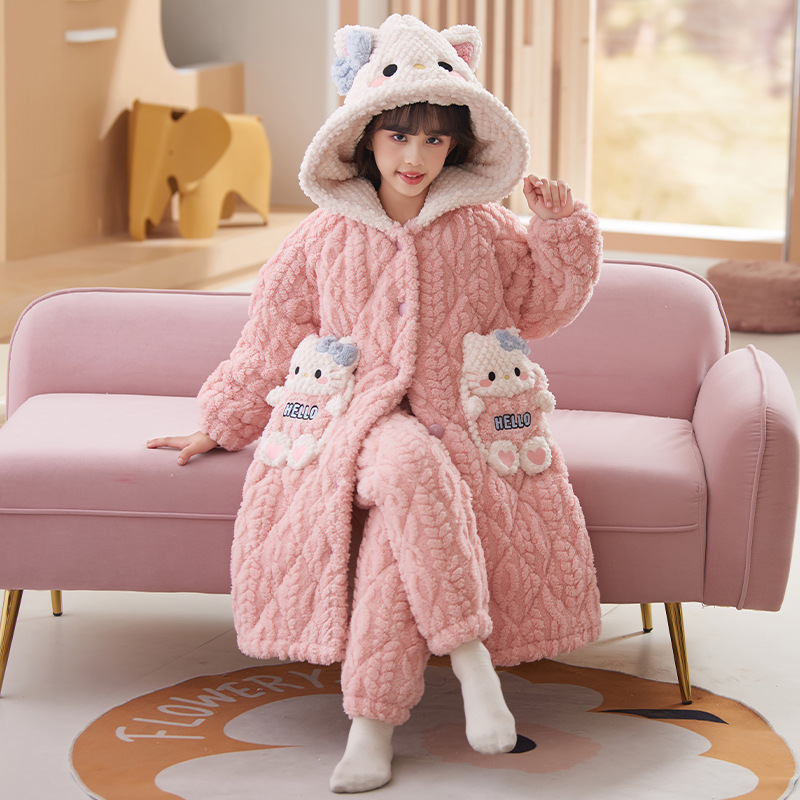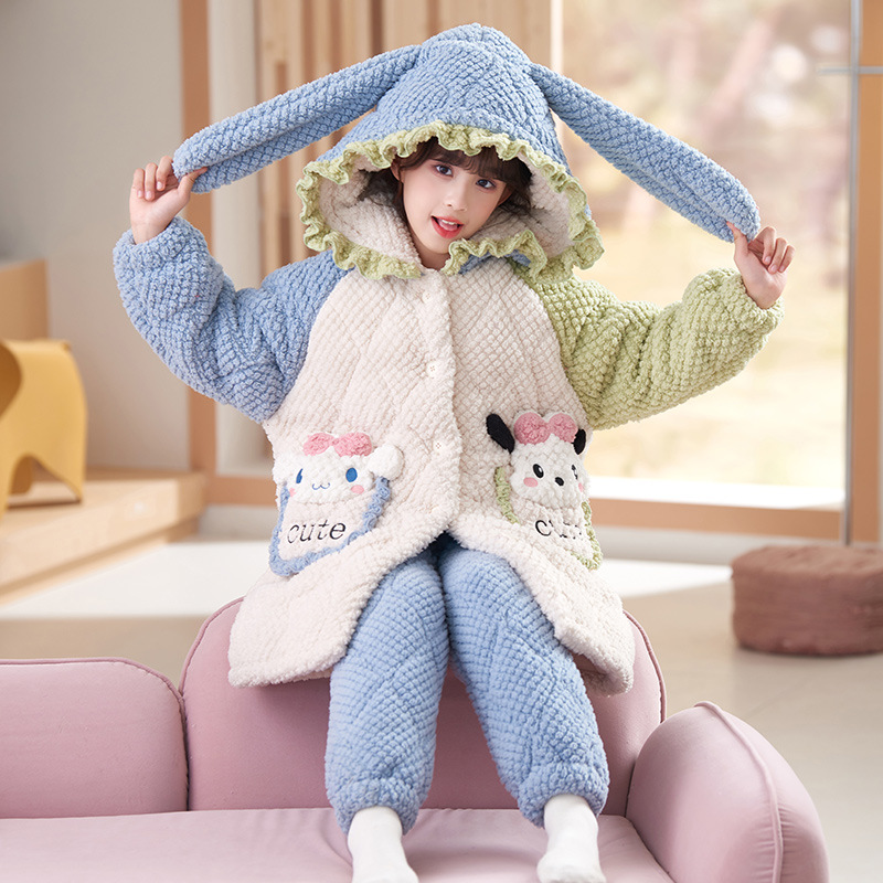 여자 잠옷 3 층 퀼트 두껍게 멜티 잠옷 공주 소녀의 나이 많은 아이들 아기 아이들의 집 겨울 착용스토어 가기