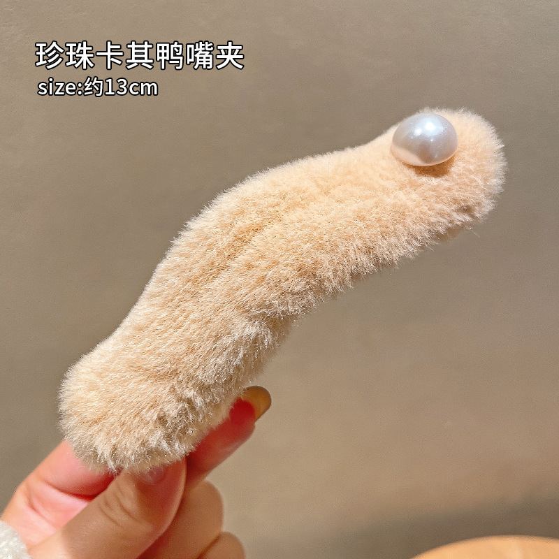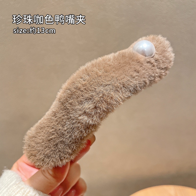 봉제 머리핀 여성의 가을과 겨울 앞머리 클립 큰 털복숭이 덕통 클립 클립 머리 머리 장식 큰 머리 카드스토어 가기